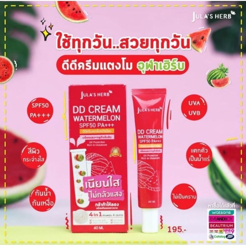 ส่งฟรี/มีไลฟ์ (หลอด) Jula's Herb DD Cream Watermelon จุฬา เฮิร์บ ดีดี ครีมแตงโม หน้าเนียน 40 กรัม