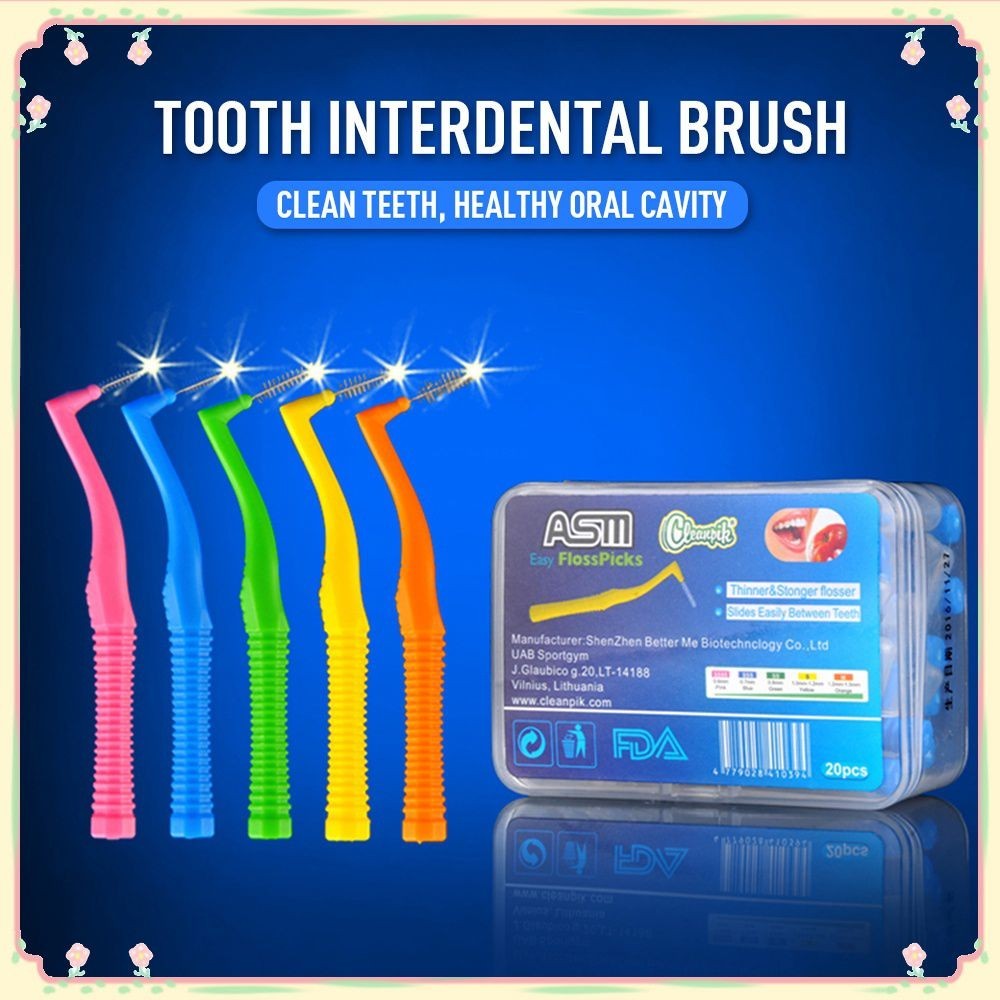 20 ชิ้น/กล่องมุมแปรงซอกฟันรูปตัว L ไหมขัดฟันทำความสะอาดระหว่างฟันจัดฟันแปรงฟันไม้จิ้มฟันเครื่องมือดูแลช่องปาก 【sunny】