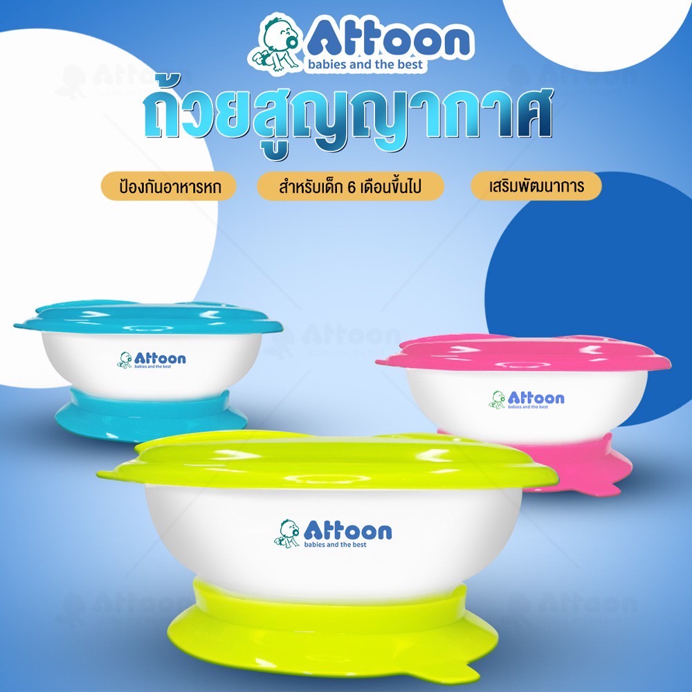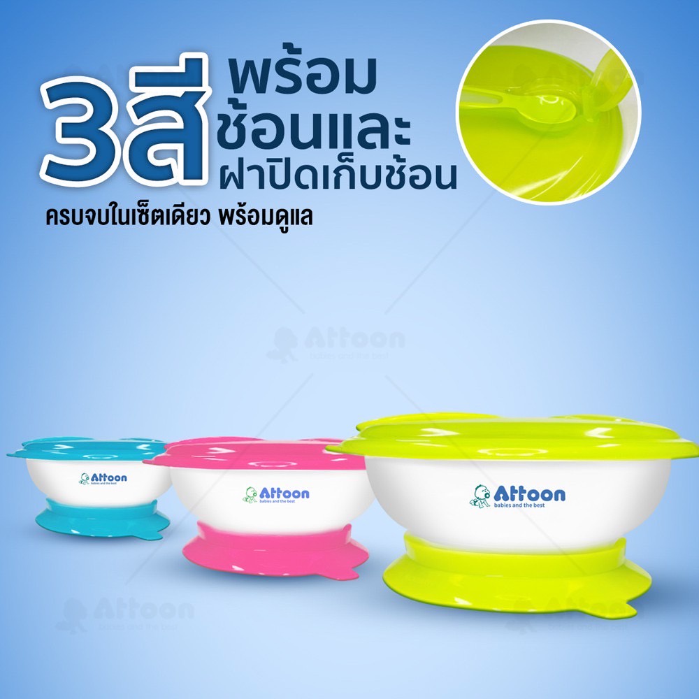 ATTOON CENTER ชุดชามดูดโต๊ะ ชามเด็ก ถ้วยฐานสุญญากาศ ถ้วยฝึกทานอาหาร คละสี