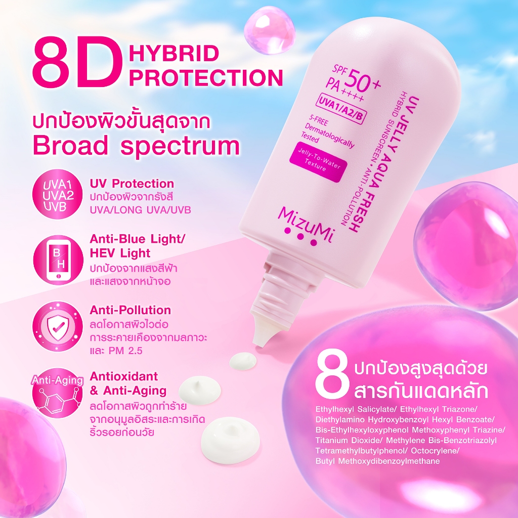 (40g) MizuMi UV Jelly Aqua Fresh มิซึมิ กันแดดเนื้อเจลลี่น้ำ เบา เกลี่ยง่าย ผิวฉ่ำโกลว ชมพู (0546)