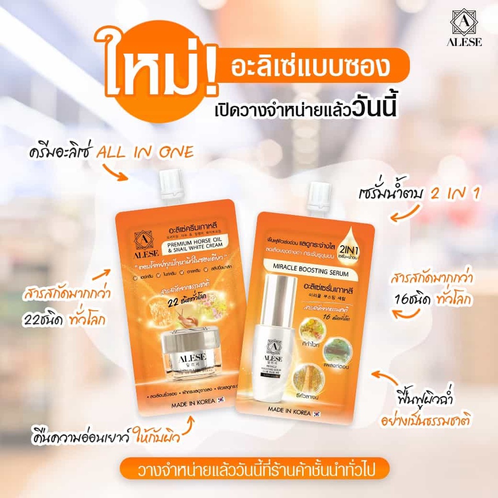 1แถม 1 ซอง 7G. อะลิเซ่ ALESE เซรั่มน้ำตบ / ครีมกันแดด / ซีซีครีม เซรั่มฝ้า กระ จุดด่างดำ ริ้วรอย บูสติ้ง เซรั่ม