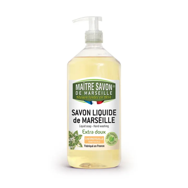 Maitre Savon de Marseille สบู่เหลวธรรมชาติ 100% กลิ่นฮันนี่ซัคเคิ่ล Liquid Soap Honeysuckle (500 ml or 1 L)