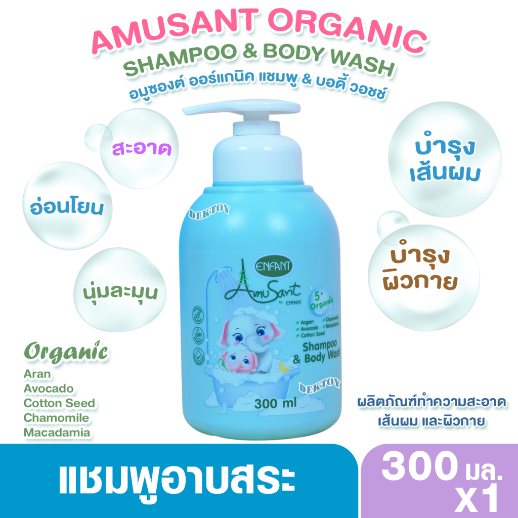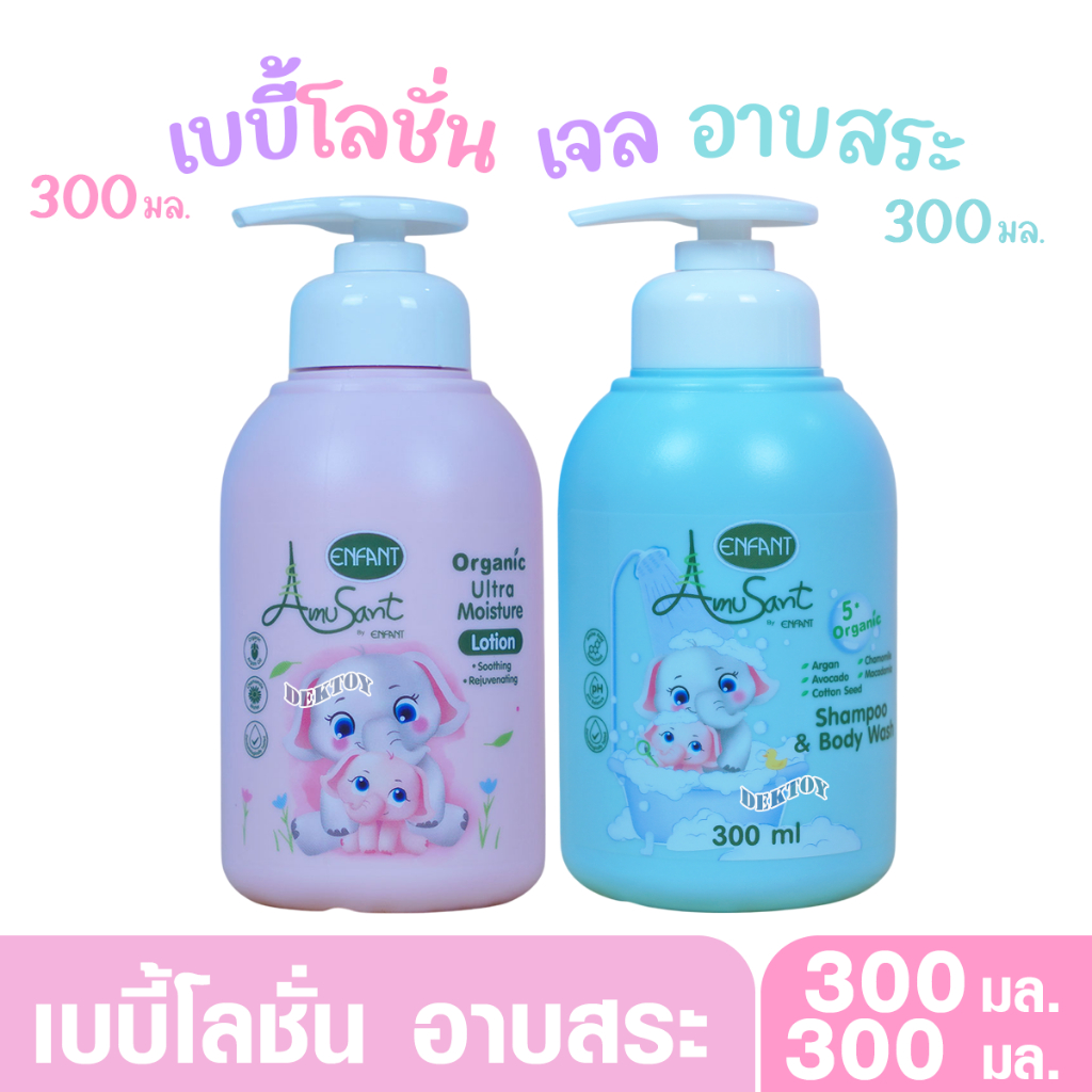 แพ็คคู่ Enfant อองฟองต์ Amusant อมูซองต์เบบี้โลชั่นบำรุงผิว เจลอาบสระ Shampoo&Body Wash สูตรออร์แกนิค 300 มล.