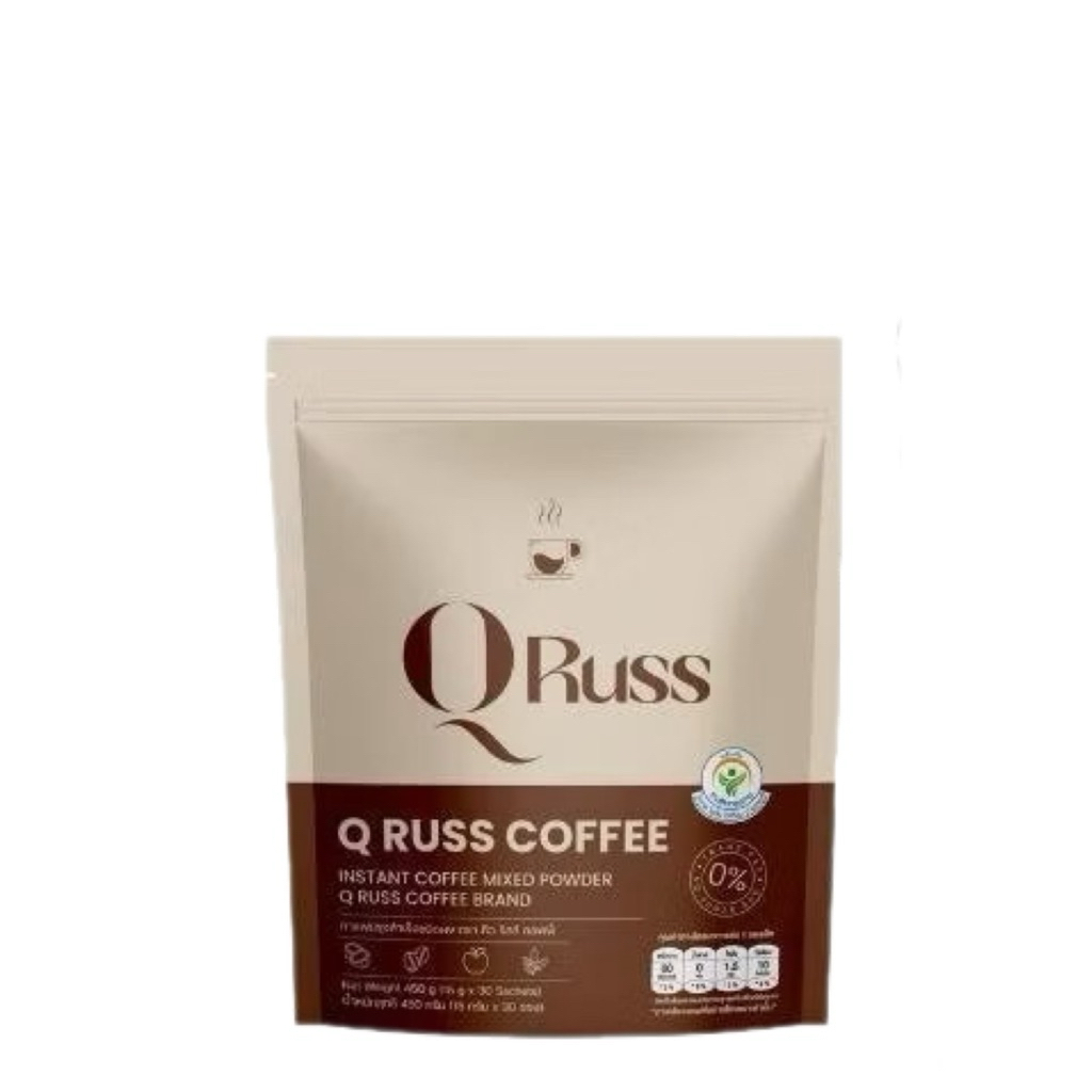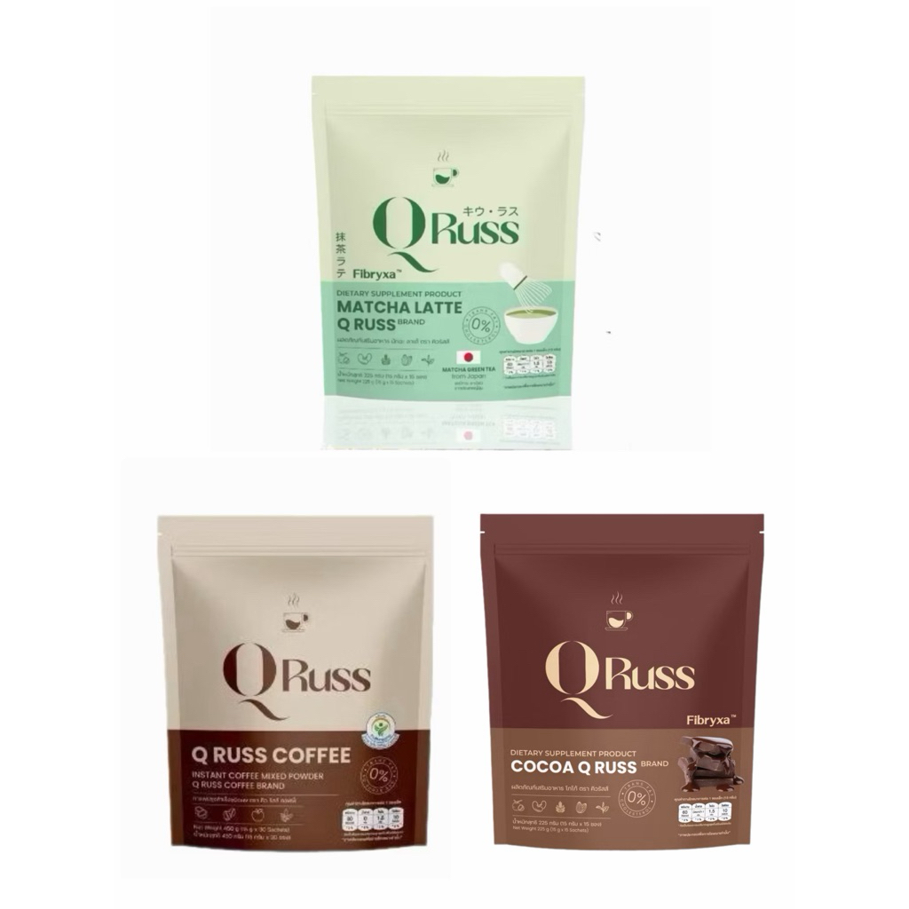 กาแฟ Q Russ Coffee Plus กาแฟ คิวรัสส์ คอฟฟี่ พลัส 1 ห่อบรรจุ 30 ซอง&ชาเชียว Q 1 ห่อ 15 ซอง โกโก้ 30 ซอง ราคาต่อห่อ