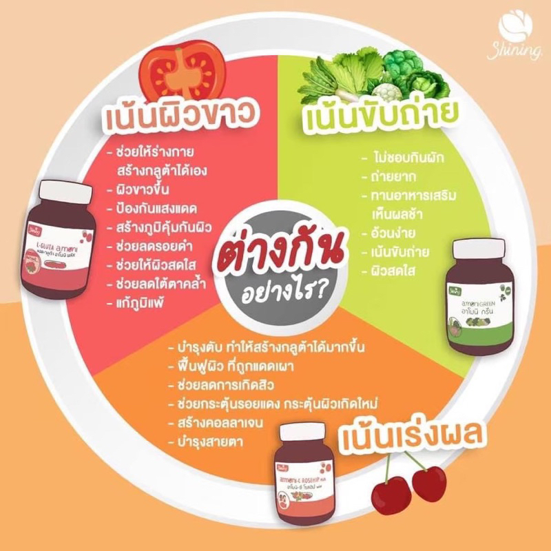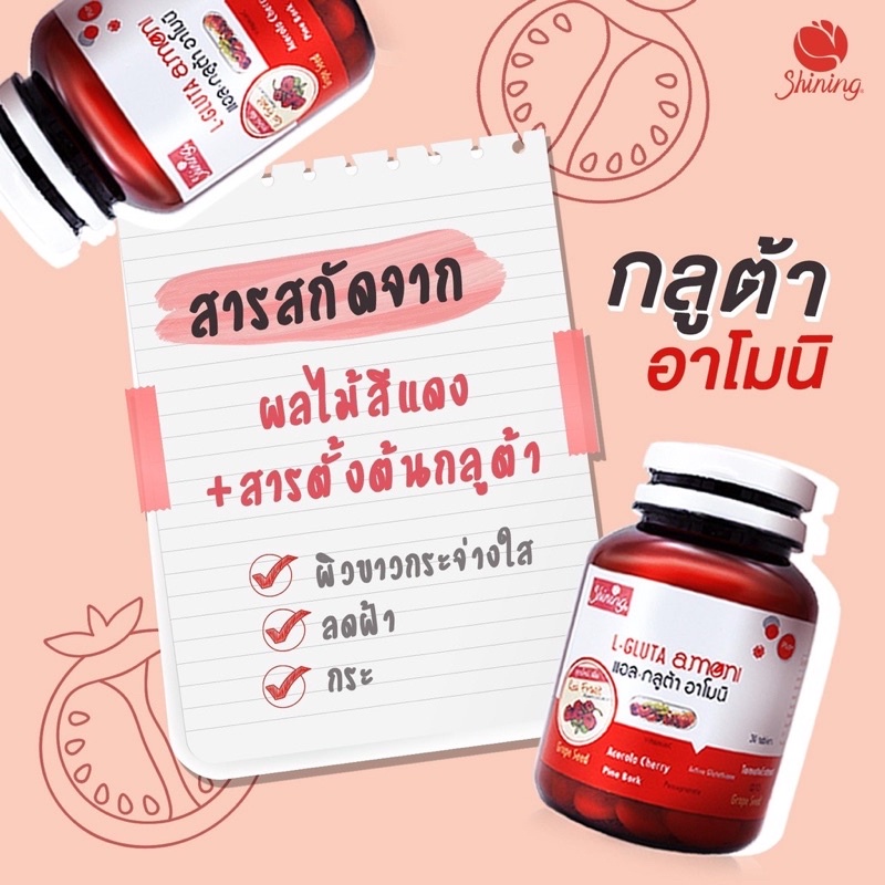 [ส่งฟรี ของแท้‼️]กลูต้าอาโมนิ วิตามินอาโมนิ 5 สูตร ซีโรสฮิป Amoni Shining ชายนิ่ง แอล กลูต้า/โรสฮิป/กรีน/ซิงค์/แม็กไนท์