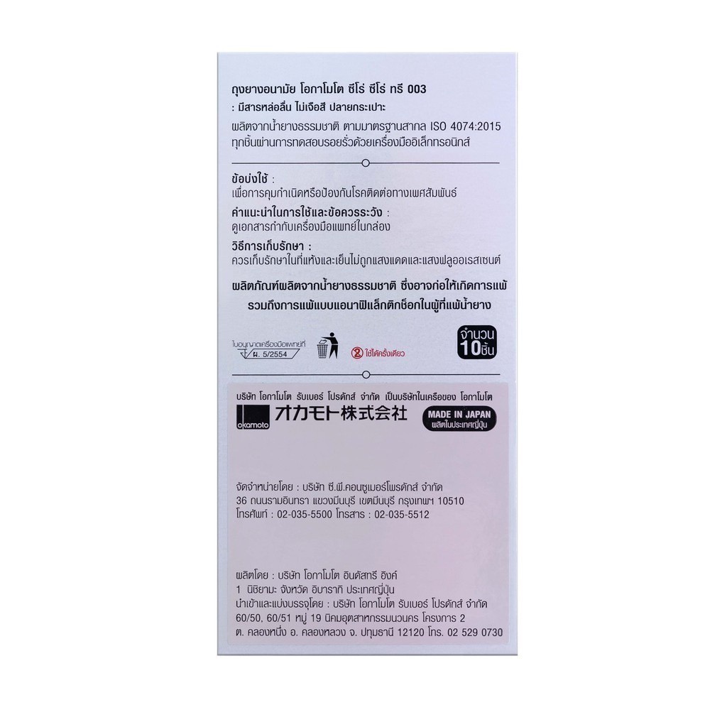 ลดเพิ่ม 30% 🔥 ของแท้ 100% Okamoto ถุงยางอนามัยโอกาโมโต ซีโร่ ซีโร่ ทรี 003 แพค 10 ชิ้น กล่องใหญ่ 2 กล่อง