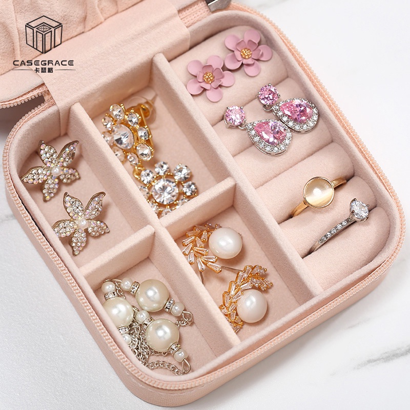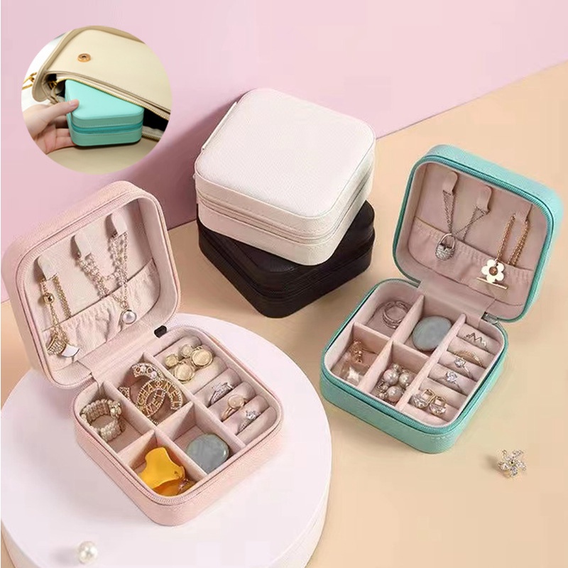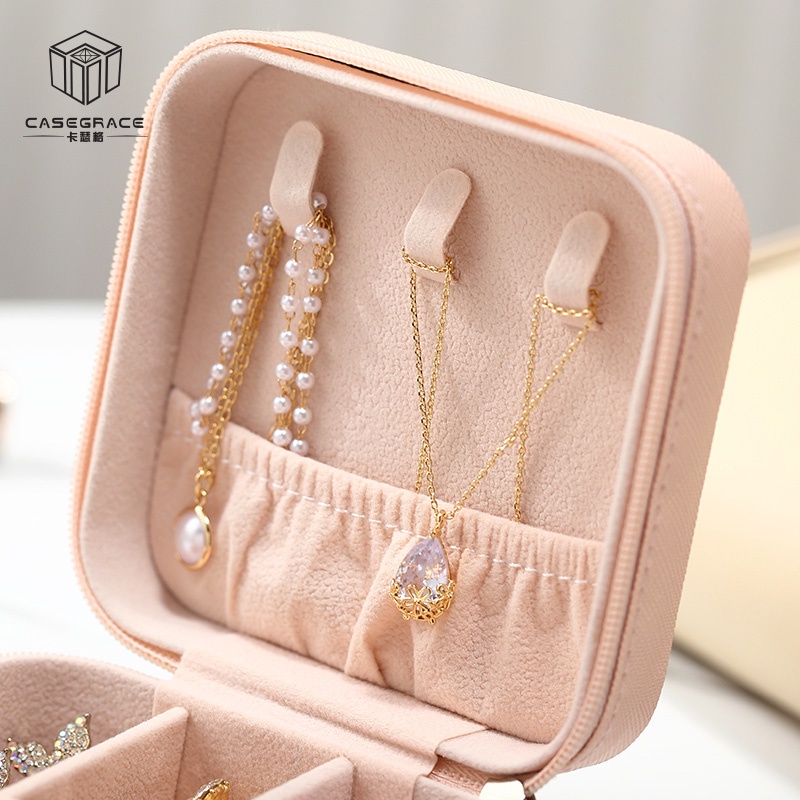 กล่องเครื่องประดับ หนัง PU กล่องเก็บเครื่องประดับ ผ้ากำมะหยี่ แบบมีซิป ขนาดเล็ก พกพาง่าย เก็บเครื่องประดับ จัดระเบียบ