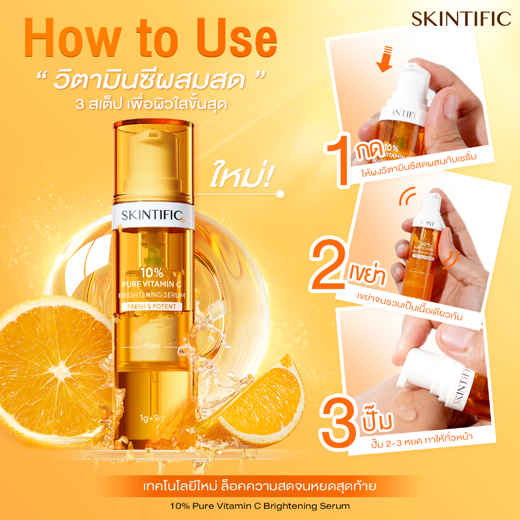 SKINTIFIC 10% Pure Vitamin C Fresh Brightening Serum เซรั่ม เซรั่มบำรุงผิวหน้า ผิวดูไบรท์ขึ้น จุดด่างดำแลดูจางลง
