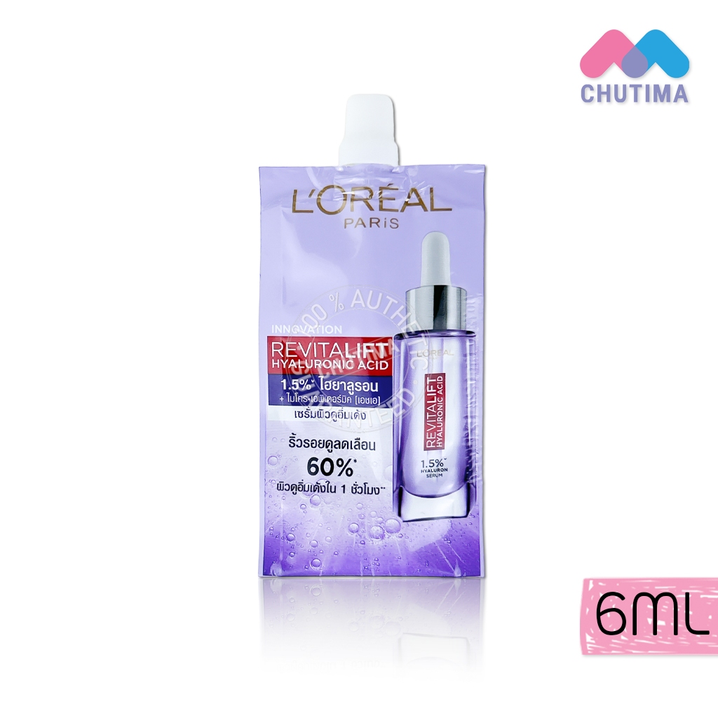 (1ซอง) ครีมซอง ลอรีอัล ปารีส รีไวทัลลิฟท์ L'OREAL PARIS REVITALIFT HYALURONIC ACID HYALURON SERUM/ CREAM 6ml./7ml.