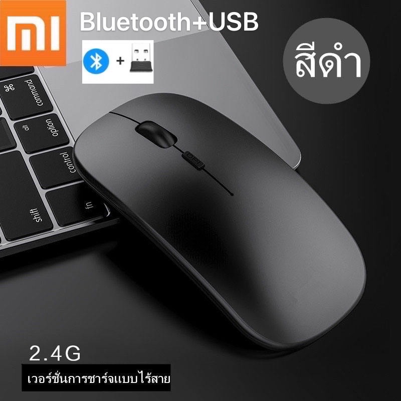 เมาส์ไร้สาย xiaomi Wireless Mouse มีแบตในตัว ชาร์จแบตได้ 2.4G + Bluetooth (ตัวรับสัญญาณ USB + Bluetooth)