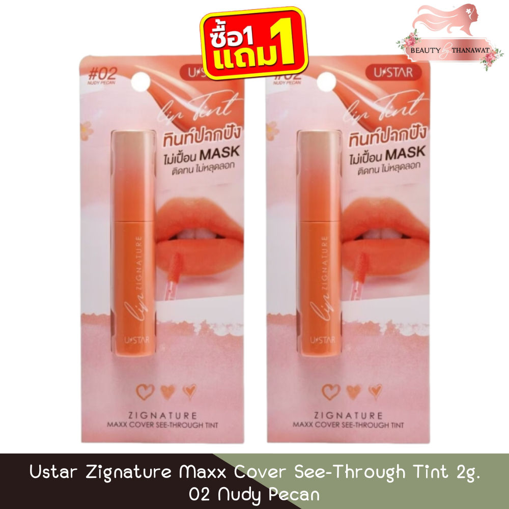 (1แถม1) Ustar Zignature Maxx Cover See-Through Tint 2g. 02 Nudy Pecan ยูสตาร์ ซิกเนเจอร์ แม็กซ์ คัฟเวอร์ ซีทรู ทิ้นท์ 2ก