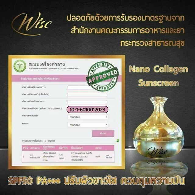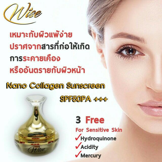 กันแดดหน้าเนียน Wise Nano collagen SPF50PA+++ ไวซ์