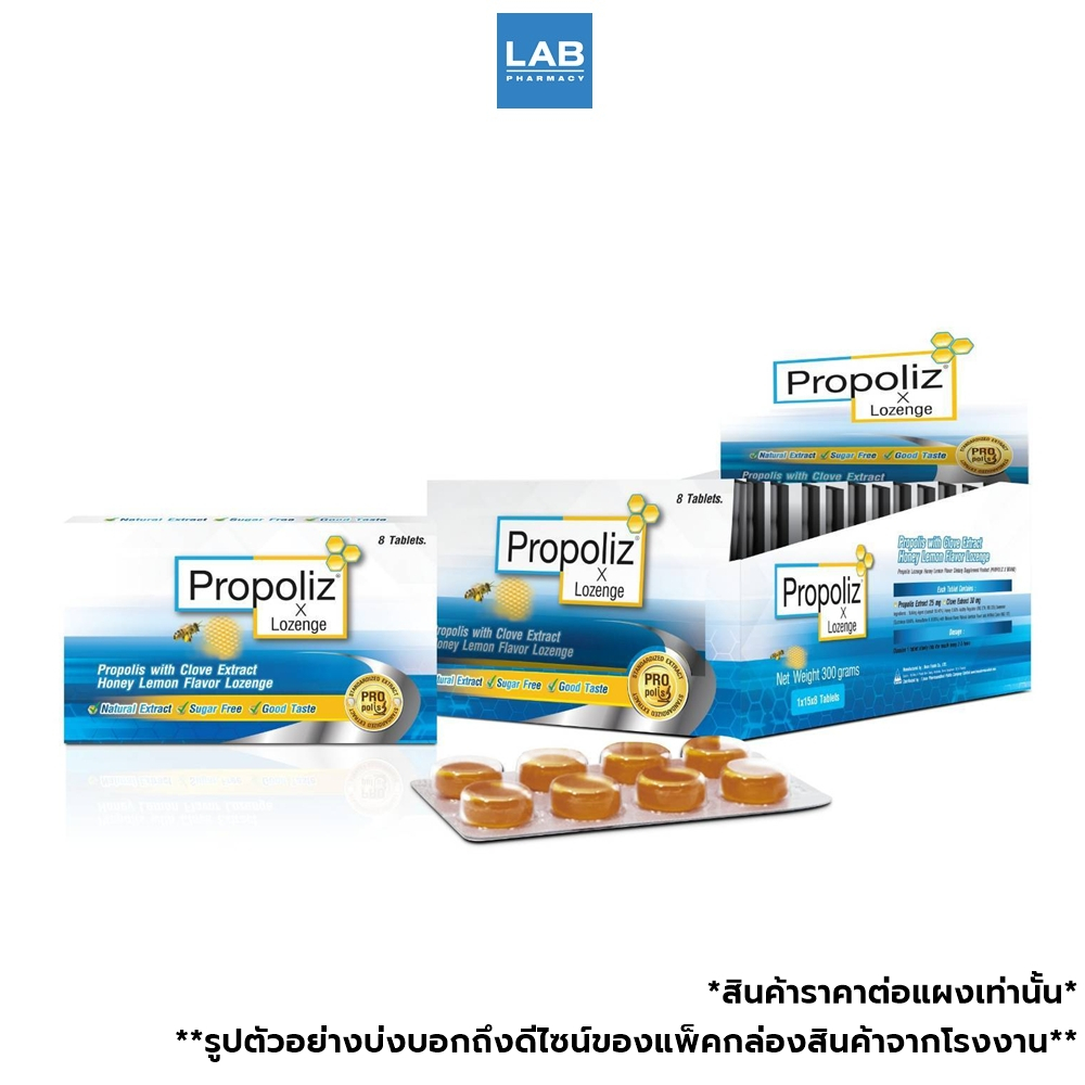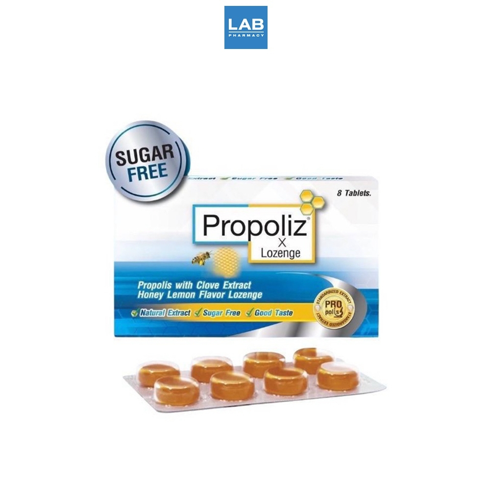 Propoliz X Lozenge 8 Tablets โพรโพลิส ชนิดเม็ดอม กลิ่นน้ำผึ้งมะนาว 8 เม็ด