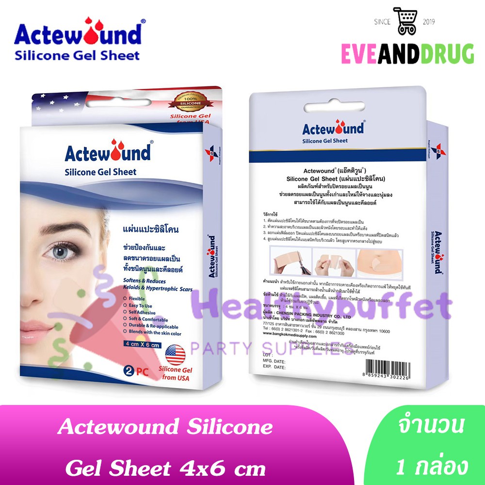 ( 4X6 cm กล่องเล็ก) Actewound Silicone Gel Sheet ขนาด 4 X 6 Cm 1กล่อง 2แผ่น แผ่นแปะซิลิโคน แผ่นลดรอยแผลเป็นนูน
