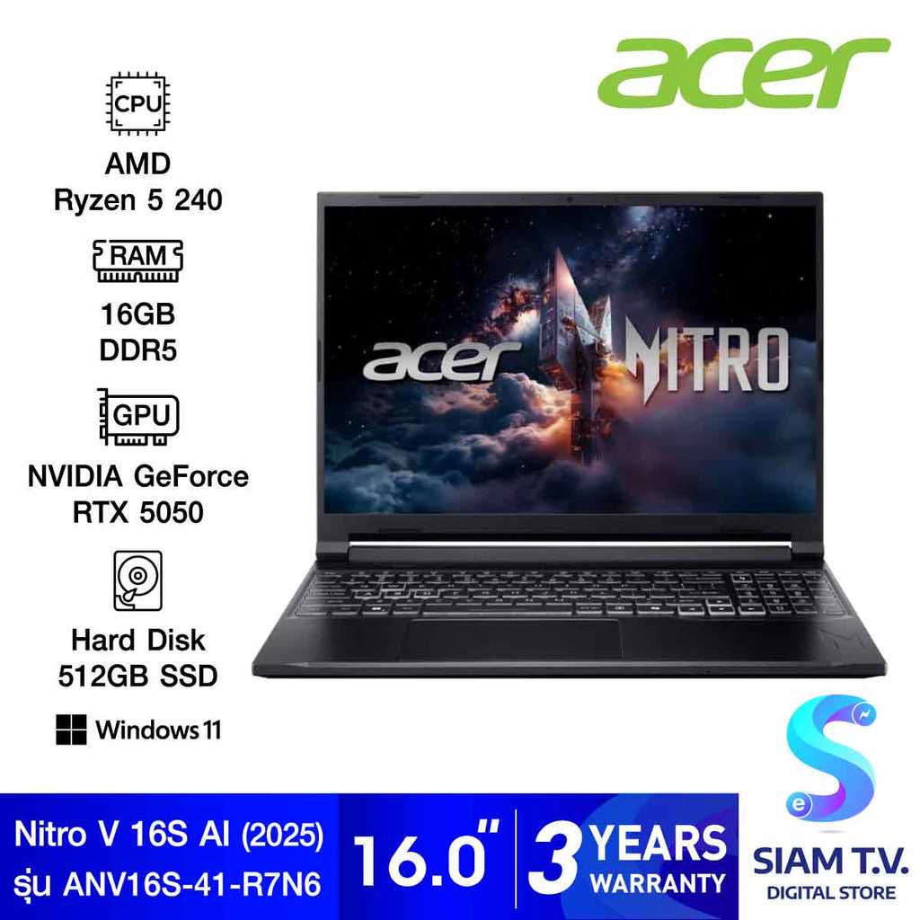 NOTEBOOK (โน้ตบุ๊ค) ACER NITRO V 16S AI ANV16S-41-R7N6 (BLACK) โดย สยามทีวี by Siam T.V.