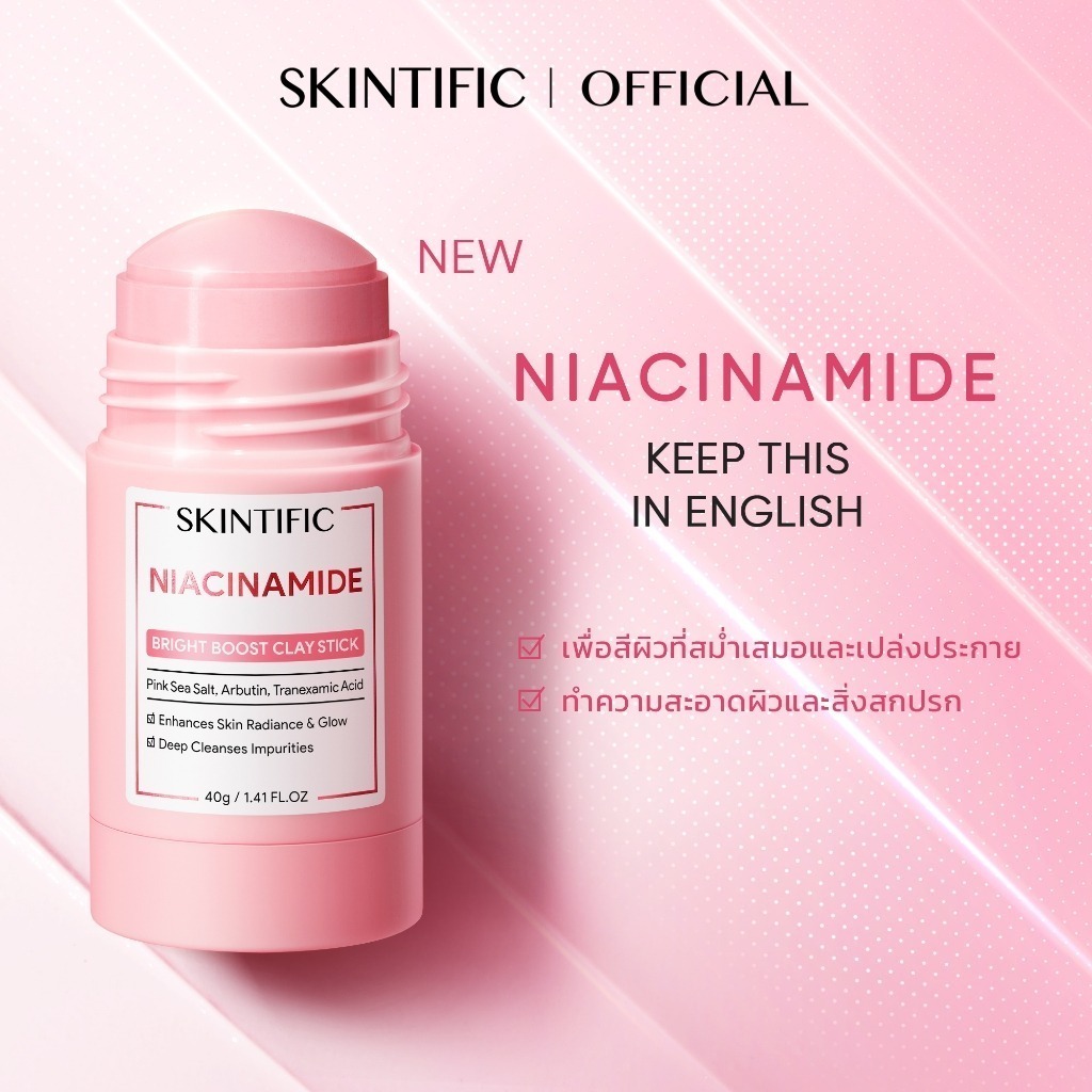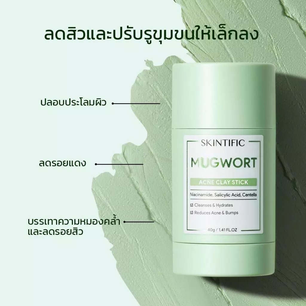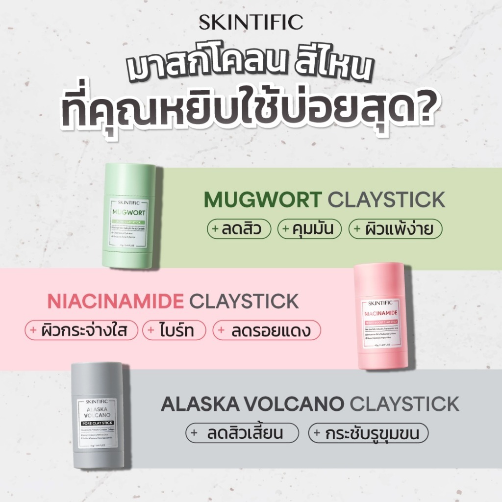 SKINTIFIC Clay Stick 40g. มาร์กโคลนแบบแท่ง 3 สูตร (Mugwort/Alaska Volcano/Niacinamide)