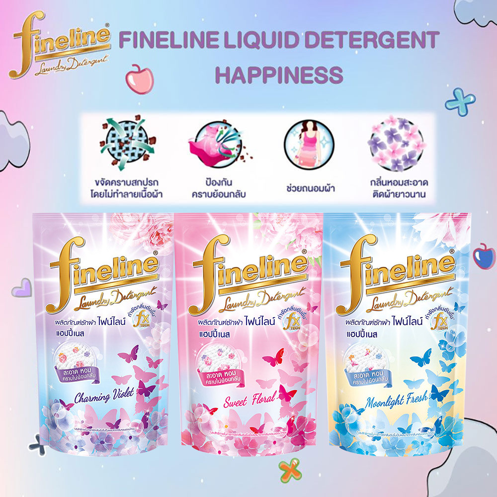 Fineline ไฟน์ไลน์ ผลิตภัณฑ์ซักผ้า 400-550ml สูตรมารตราฐาน ชนิดน้ำ แบบถุงเติม ลดกลิ่นอับ หอมยาวนาน