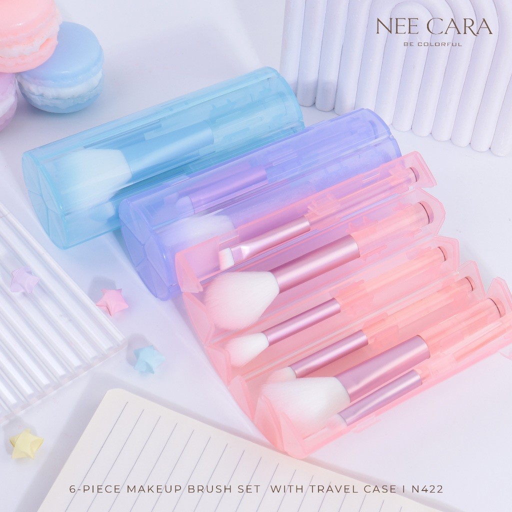 🔥แท้/ดีลสุดคุ้ม/ไลฟ์ทุกวัน🔥(คละสี) N422 NEE CARA 6-PIECE MAKEUP BURSH SET WITH TRAVEL CASE เซ็ทแปรงแต่งหน้า