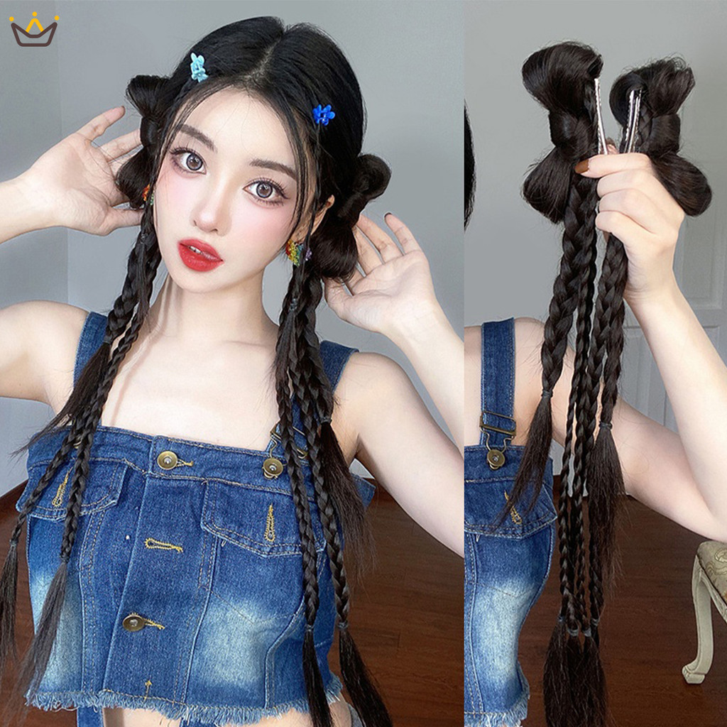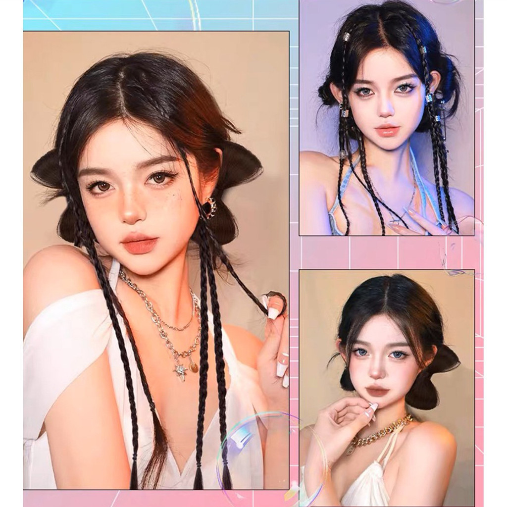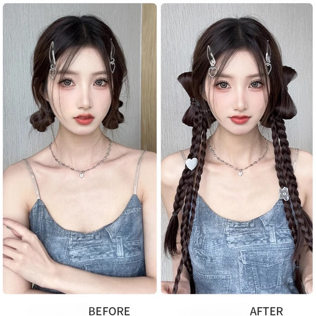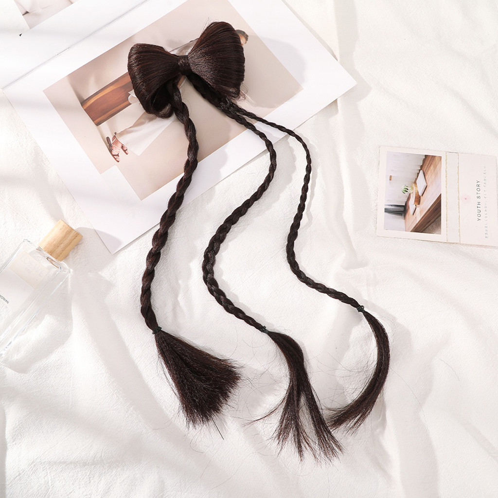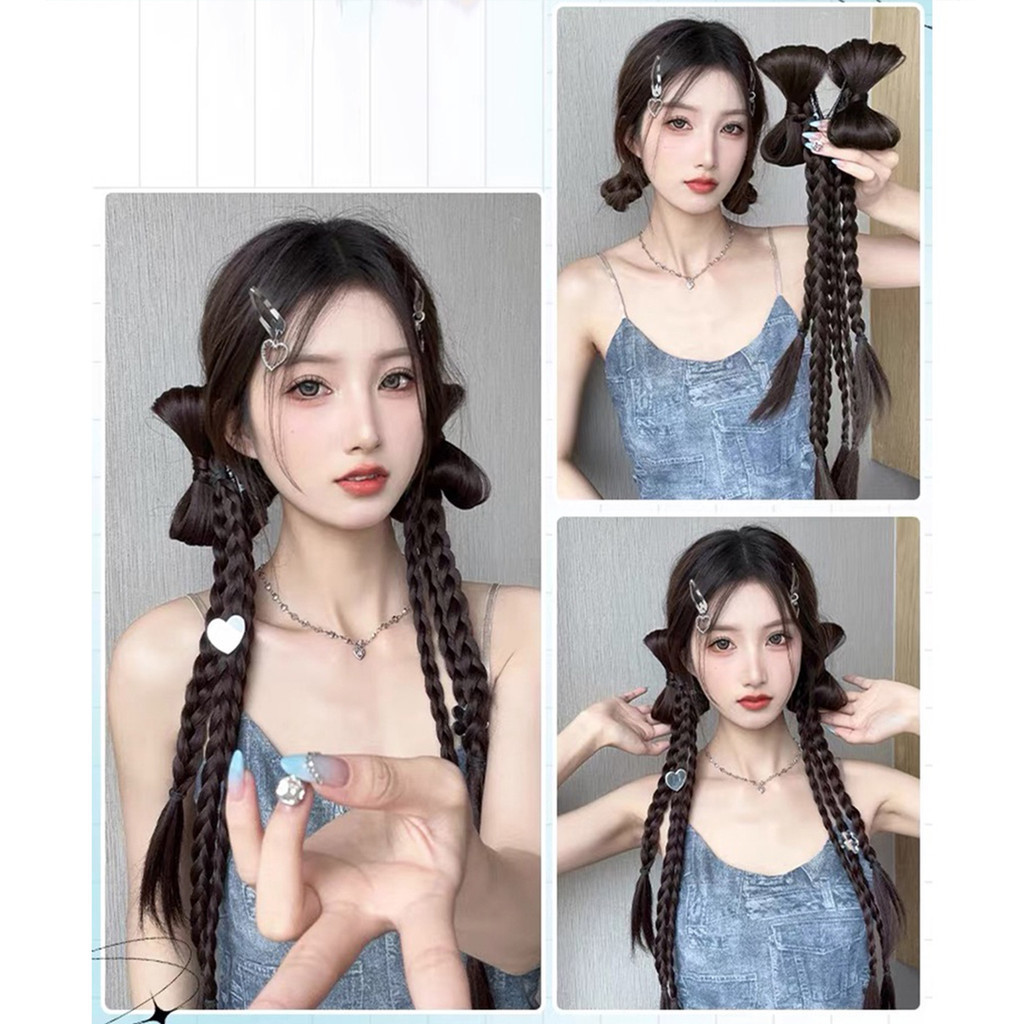 【YUE】Y2k 48 ซม. วิกผมถักเปีย โบว์ กิ๊บติดผม