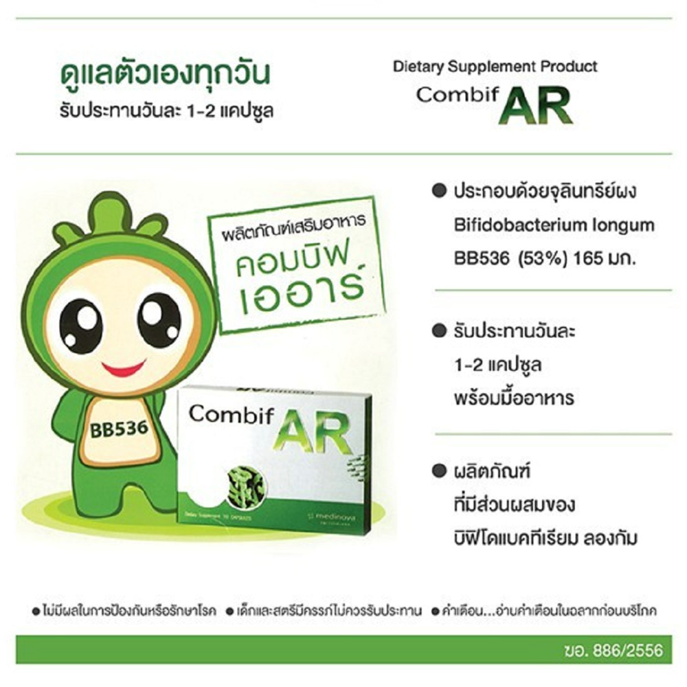 Combif AR 10 Capsules - คอมบิฟ เออาร์ ผลิตภัณฑ์เสริมโพรไบโอติก ช่วยให้ระบบขับถ่ายเป็นปกติ 1 กล่อง บรรจุ 10 แคปซูล