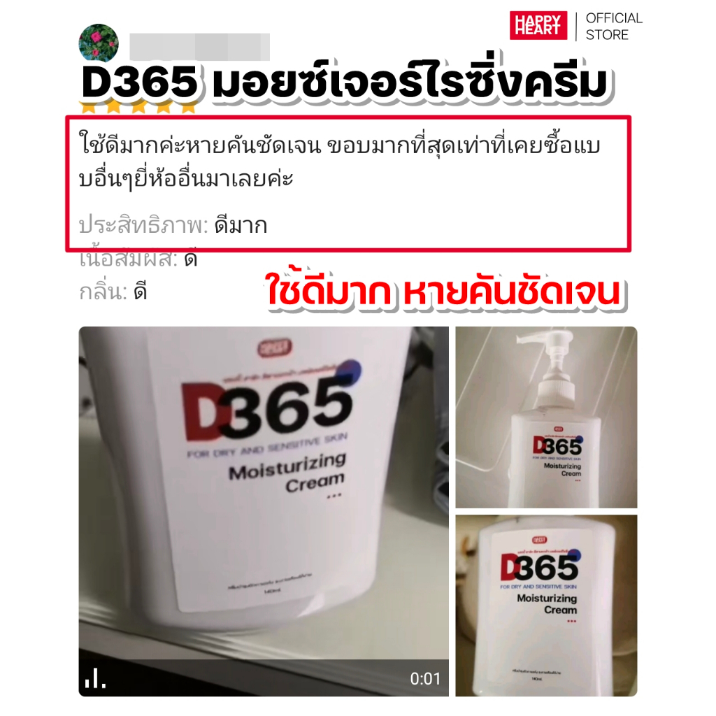 แพคเกจใหม่ [โปร 2 ขวด] D365 มอยซ์เจอร์ไรซิ่งครีมเย็นสบายตัว คัน ผื่นแพ้ ลมพิษ แพ้เหงื่อ ผิวแห้งคันในผู้สูงอายุ