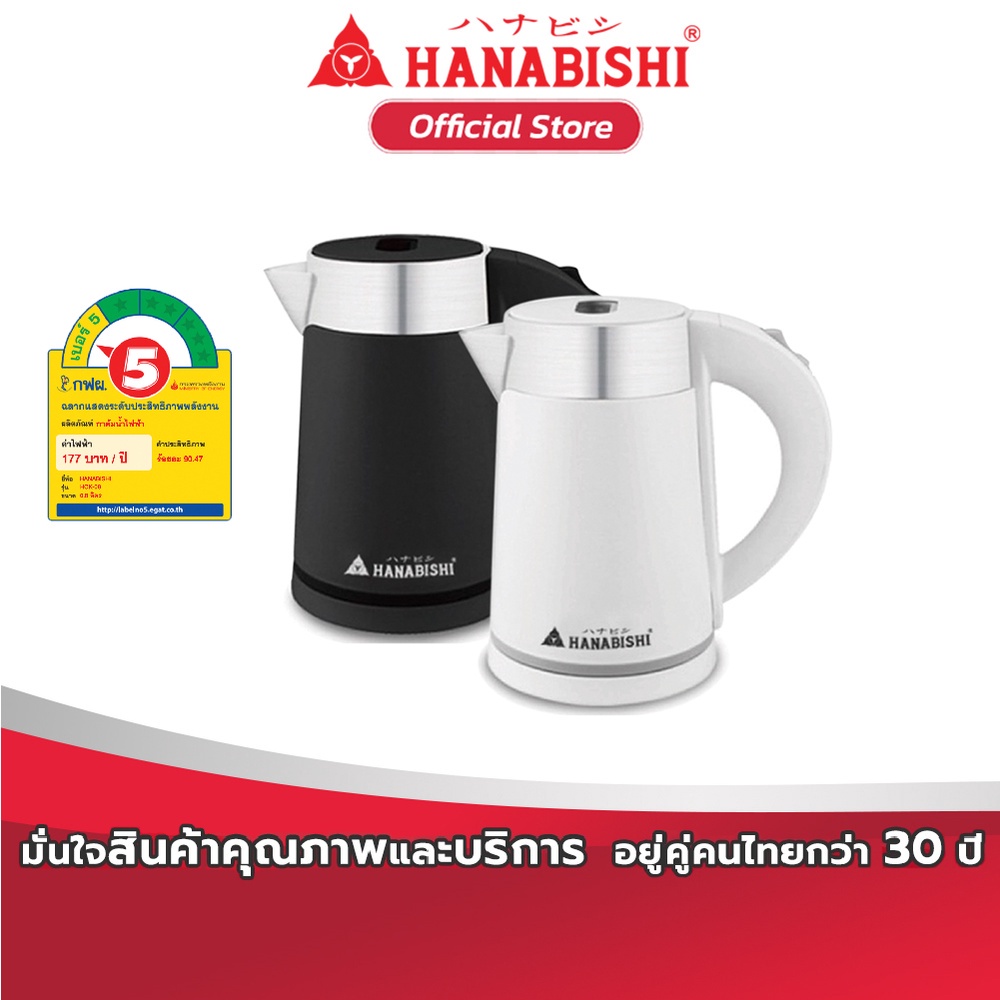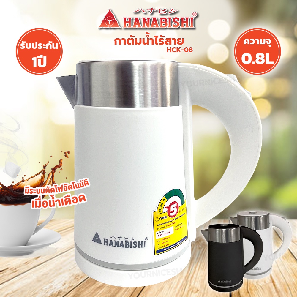 Hanabishi กาต้มน้ำไฟฟ้า 0.8 ลิตร รุ่น HCK-08 กำลังไฟ 800w กาต้มน้ำไฟฟ้า กาน้ำร้อน รับประกัน 1 ปี
