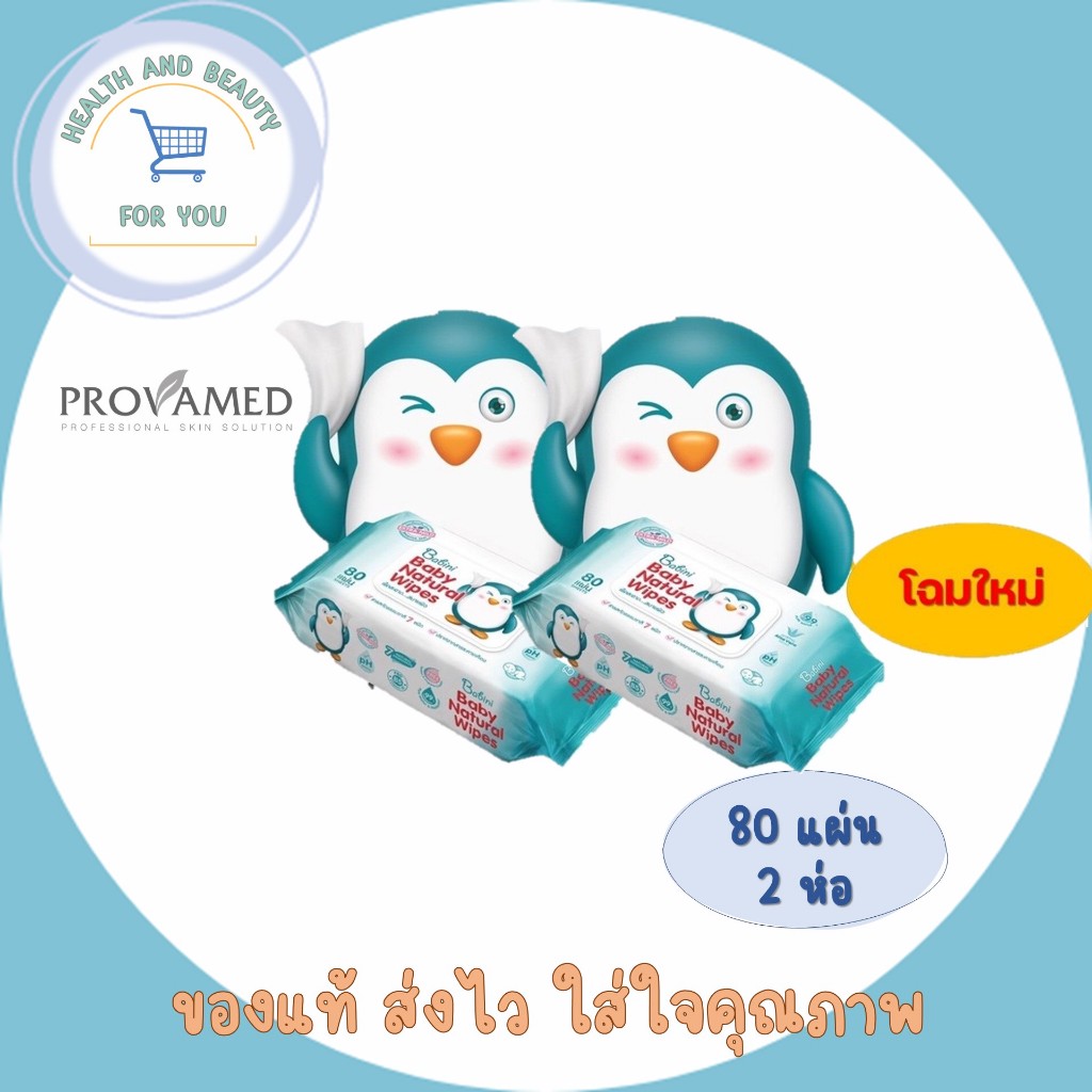 ทิชชู่เปียก Provamed Babini Baby Wipes (เบบินี่ เบบี้ ไวพ์) จำนวน 80 เเผ่น/ห่อ