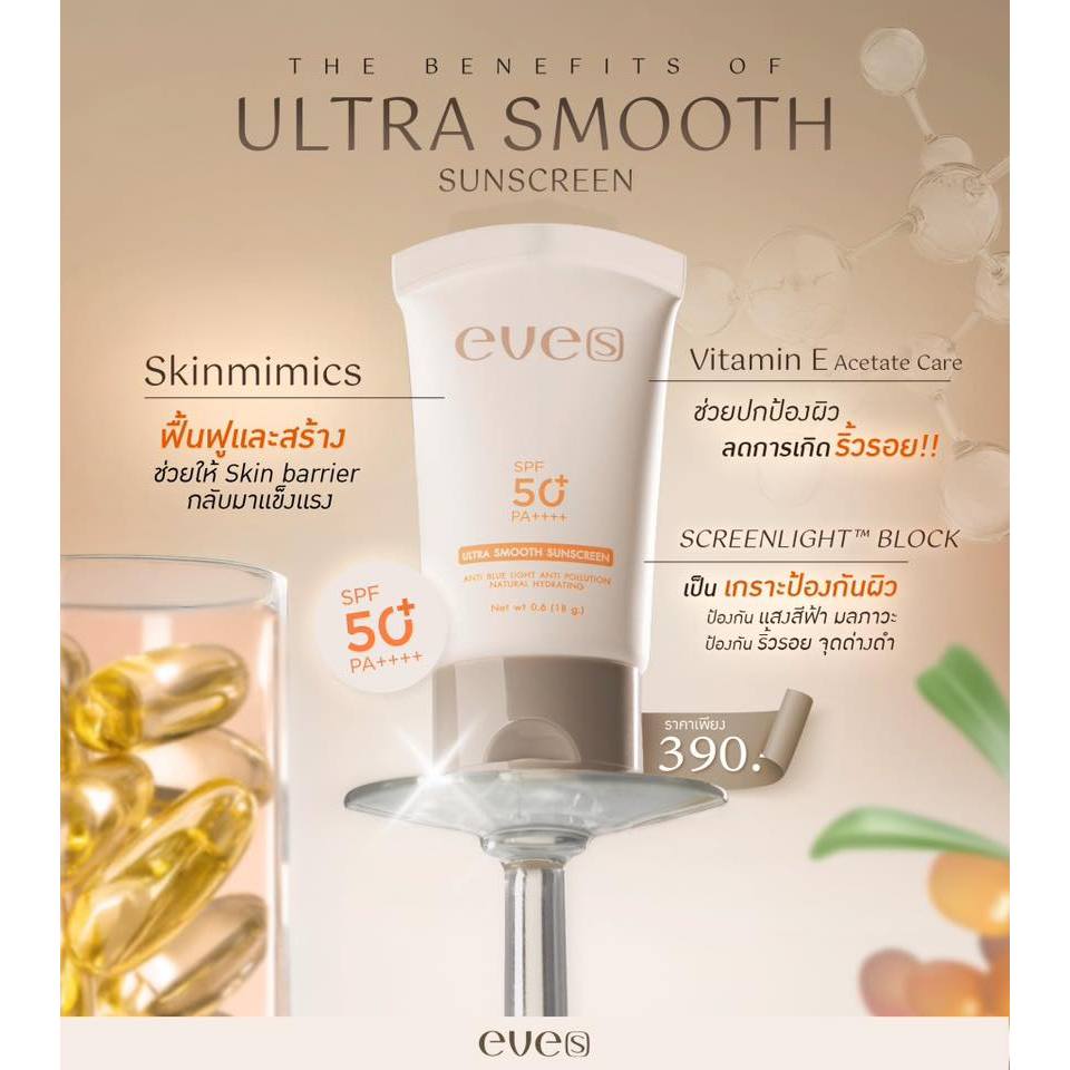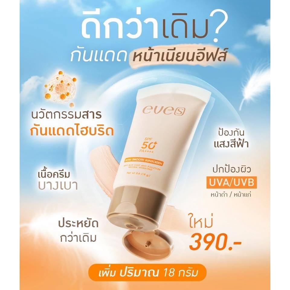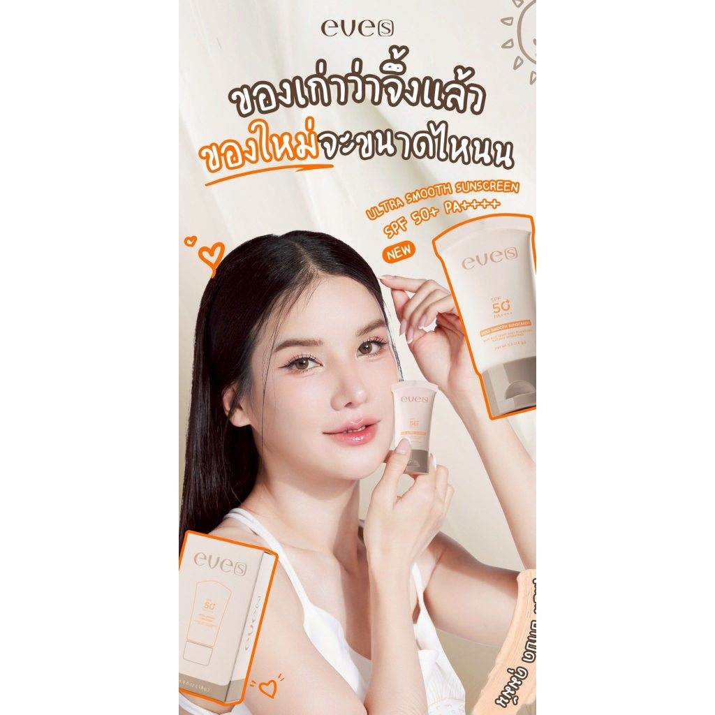 EVE'S ครีมกันแดดฝาดำใหม่ อีฟส์ ป้องกันผิวจากแสง UVA/UVB คุมมัน กันเหงื่อ เรียบเนียน