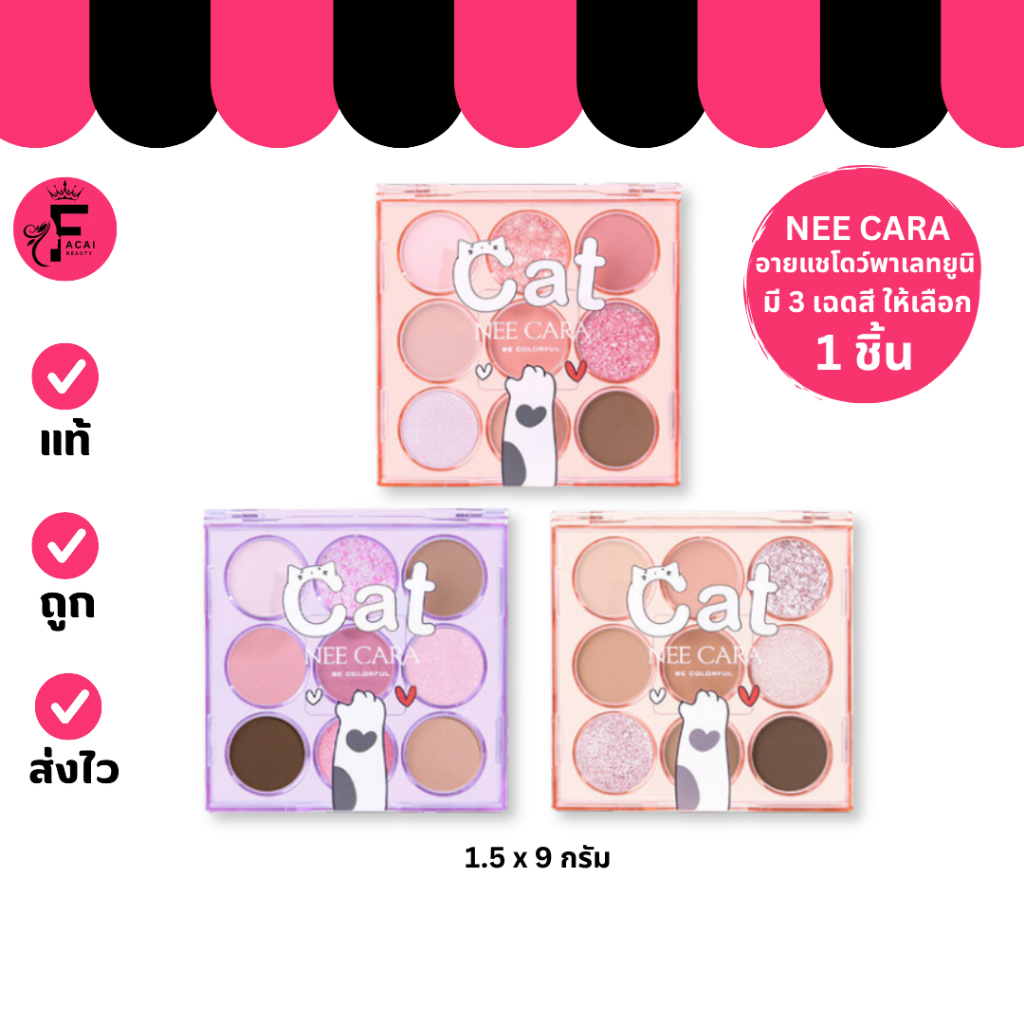 (1 ชิ้น) Nee Cara Caf 9 Color Eyeshadow (NA4654)- อายแชโดว์พาเลทยูนิแมว 9 สี (1.5 g.)