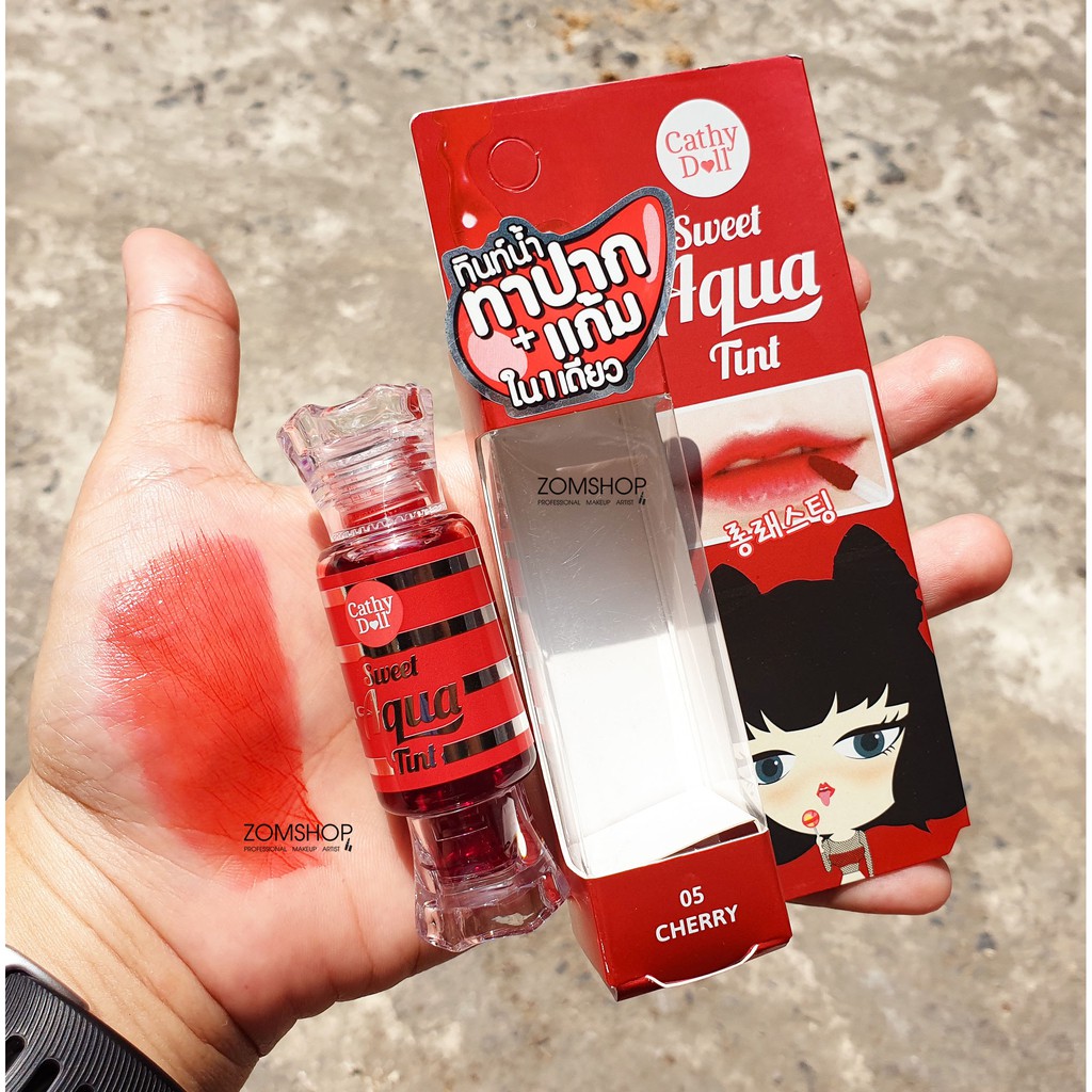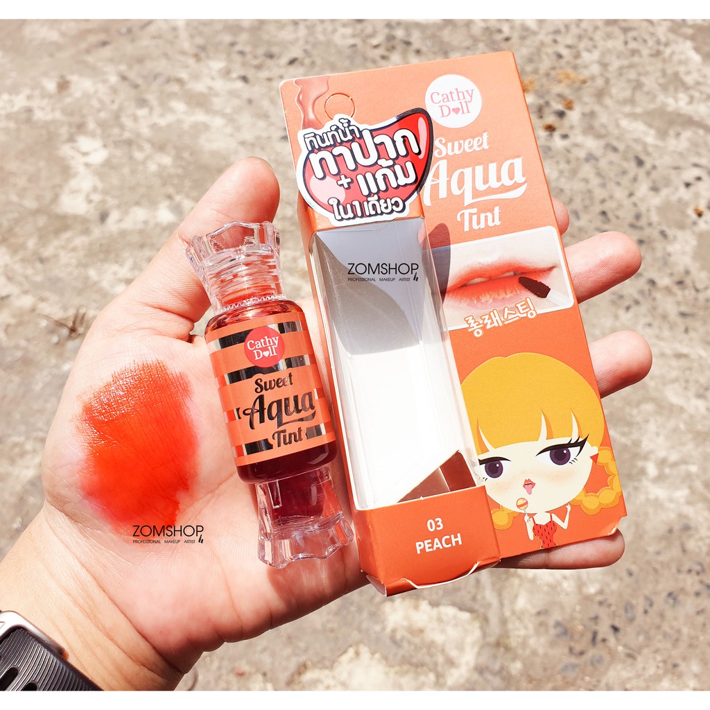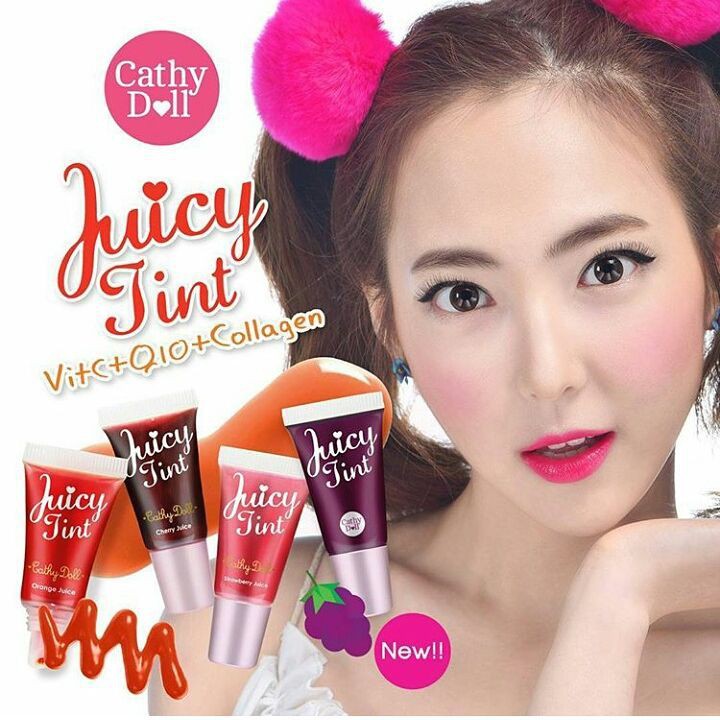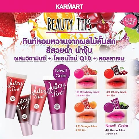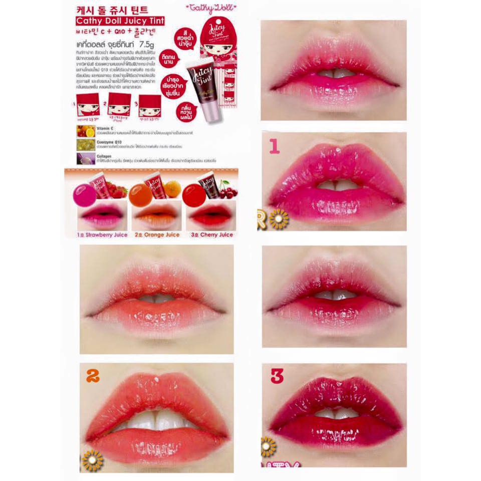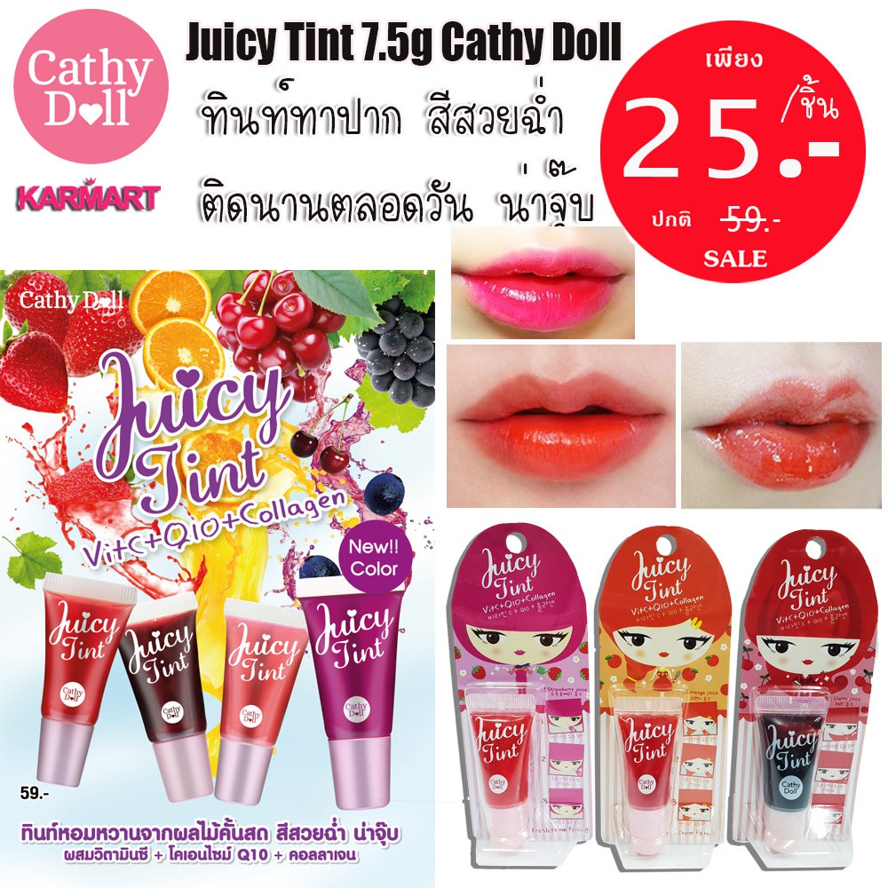ลิปทินท์ กันน้ำ สีสวยฉ่ำ ติดนานตลอดวัน Cathy Doll Juicy Tint VitC + Q10 + Collagen 7.5g (สีส้ม/ม่วง เลิกผลิต )