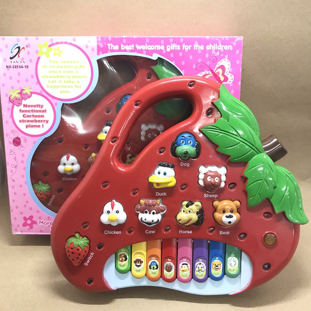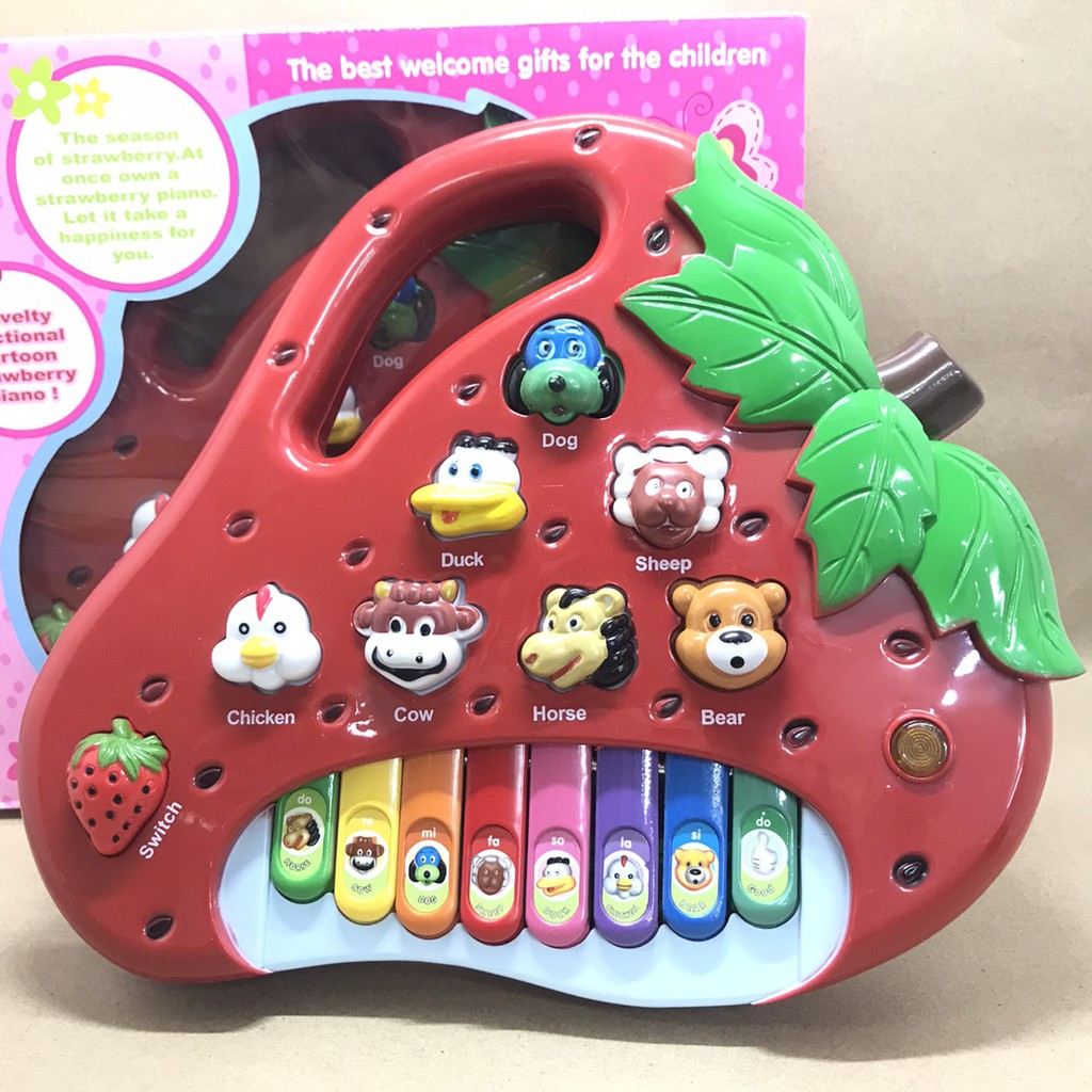ออร์แกนเสียงดนตรีลายสตอเบอรี่ เสียงสัตว์เปียโน มีเสียงมีไฟ เสียงสัตว์ ออร์แกนสตรอเบอร์รี่ สีสรรสดใสคุ้มราค า