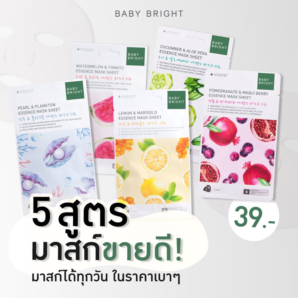 BABY BRIGHT ESSENCE MASK SHEET 20 g. มาส์หน้าเบบี้ไบร์ทแบบแยกแผ่น 5 สูตร