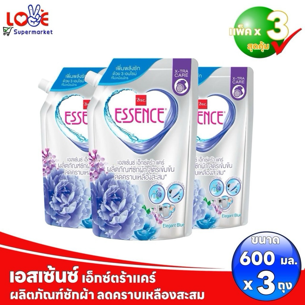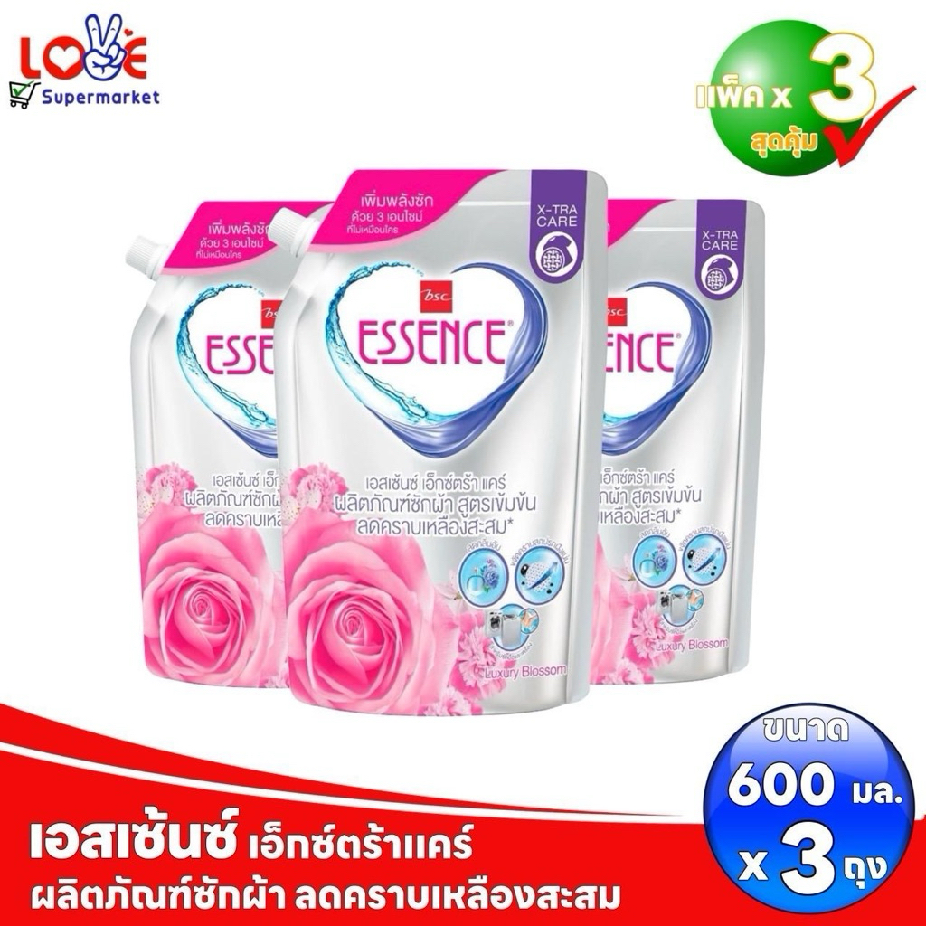 (แพ็ค3) Essence เอสเซ้นซ์ เอ็กซ์ตร้าแคร์ ผลิตภัณฑ์ซักผ้า สูตรเข้มข้น ลดคราบเหลืองสะสม ขนาด 600 มล. x 3 ถุง