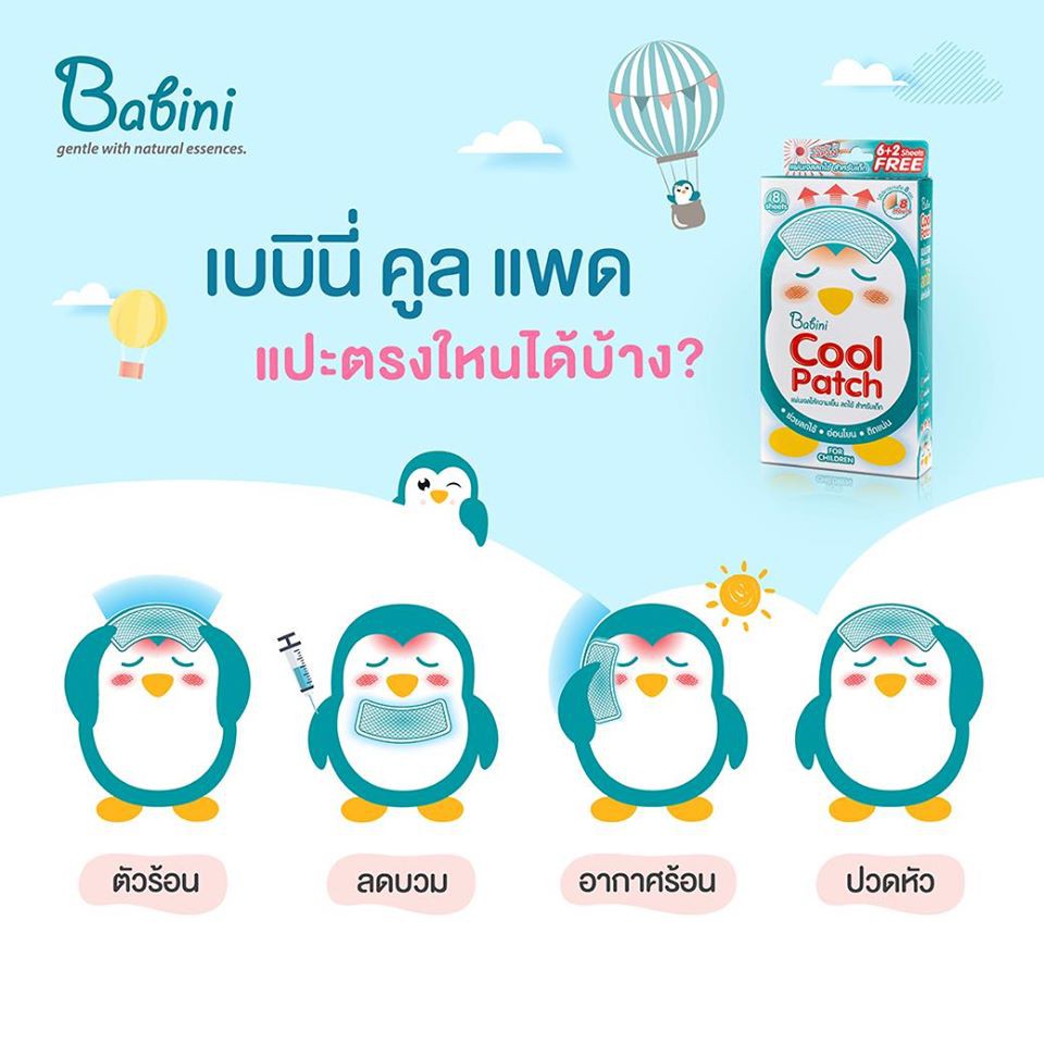 Provamed Babini Cool Patch เบบินี่ แผ่นเจลให้ความเย็น คูล แพด และ เจลลดไข้ อื่น (1 กล่อง มี4 ซอง 8 ชิ้น)