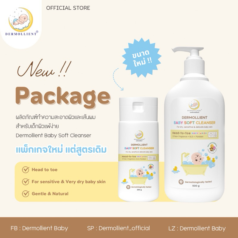 [Official Store] เบบี้ซอฟต์คลีนเซอร์ 200 กรัม Dermollient Baby Soft Cleanser