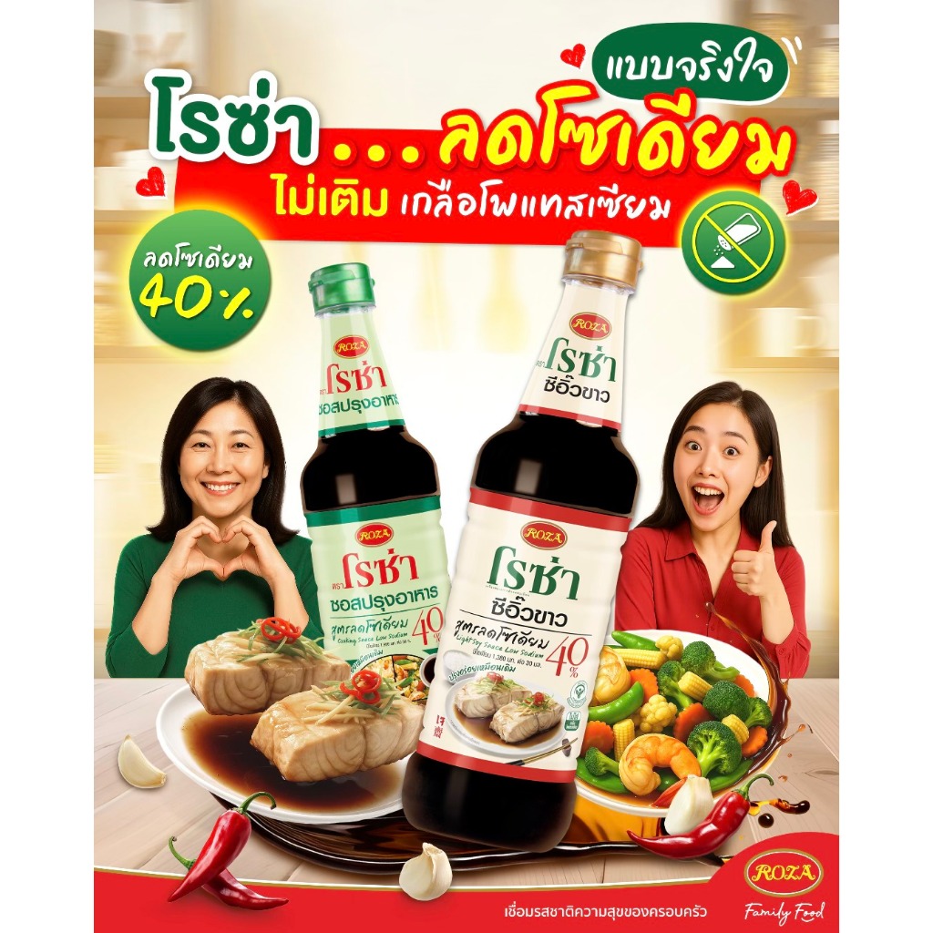 Roza โรซ่า ซีอิ้วขาว สูตรลดโซเดียม 40% เจ ขนาด 680 มล. ซีอิ๊วขาวลดโซเดียม