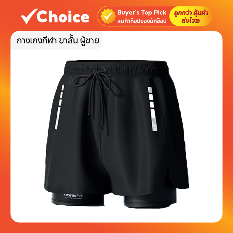 กางเกงกีฬา ขาสั้น ผู้ชาย เหมาะสำหรับออกกำลังกายและวิ่ง สีดำ ไซส์ M-XL