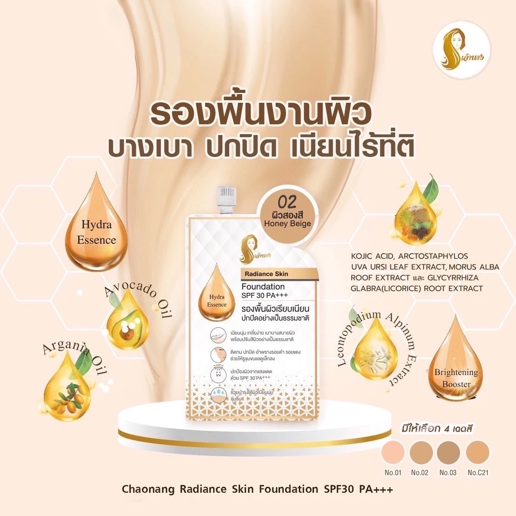 (กล่อง 6 ซอง) Chaonang Radiance Skin Foundation รองพื้นเจ้านางสูตรเดิม ( ปริมาณ 5 กรัม )