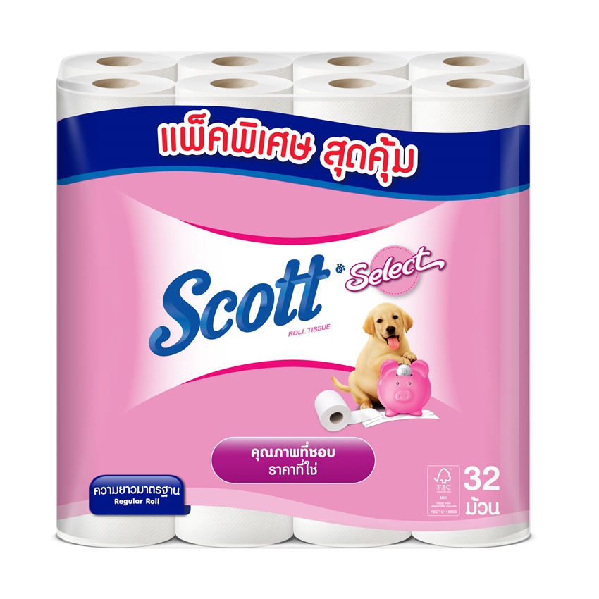 [ทั้งหมด 2 แพ็ค] สก็อตต์ กระดาษทิชชู ซีเลคท์ยาวมาตรฐาน 32 ม้วน SCOTT SELECT REGULAR ROLL 32 ROLL