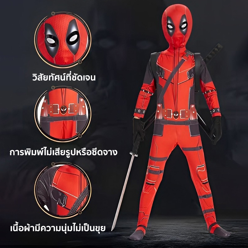 ชุด Deadpool มาเวล พลย์ชุดเดดพูลฮาโลวีน เดดพูลชุดรัดรูปวันฮาโลวีนเด็กเดดพูลชุดคอสเพลย์ชุดผู้ใหญ่