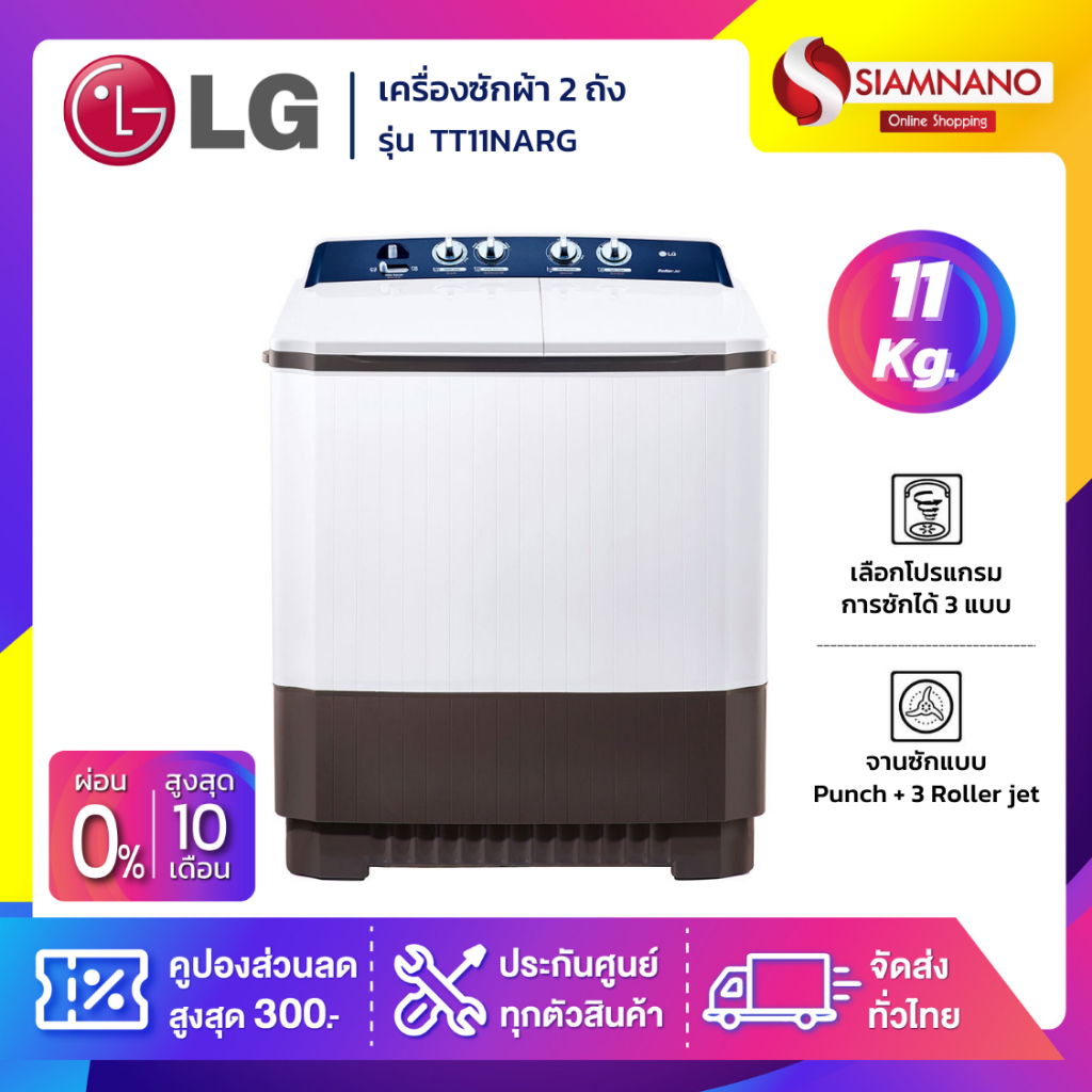 เครื่องซักผ้า 2 ถัง LG รุ่นใหม่ TT11NARG ขนาด 11 KG (รับประกันนาน 5 ปี)