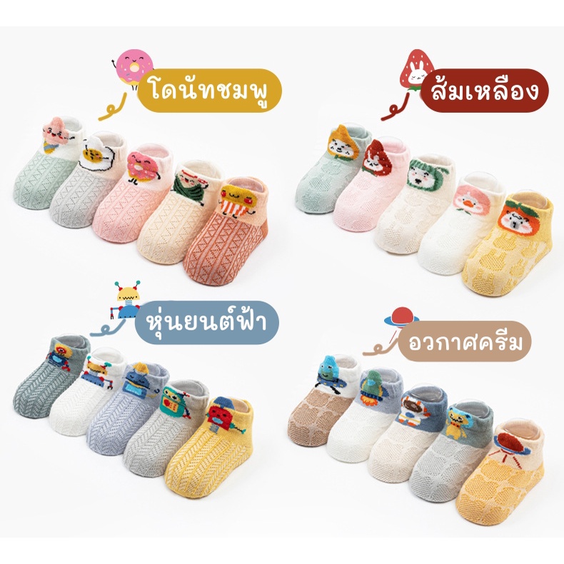 ถุงเท้าเด็ก (sk15) - ถุงเท้าผ้าตาข่าย เซท 5 คู่ สีสดใส