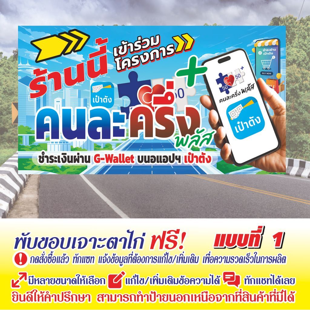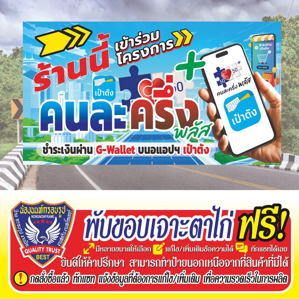 ป้ายไวนิล (VA79) ป้ายร้านนี้เข้าร่วมโครงการคนละครึ่งพลัส เป๋าตัง ไวนิลสำเร็จรูป