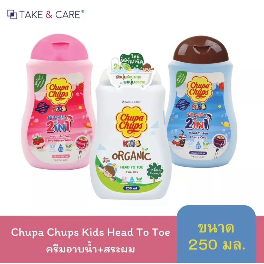 Chupa Chups Kids Head To Toe ครีมอาบน้ำ+สระผม 250 มล. อาบและสระได้ในขวดเดียว กลิ่นหอมมาก สูตรออแกนิค