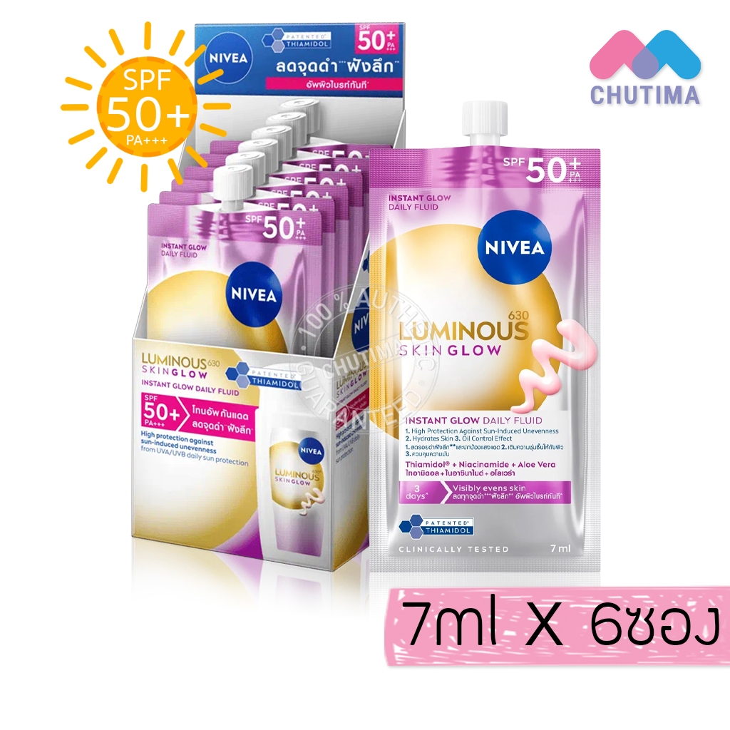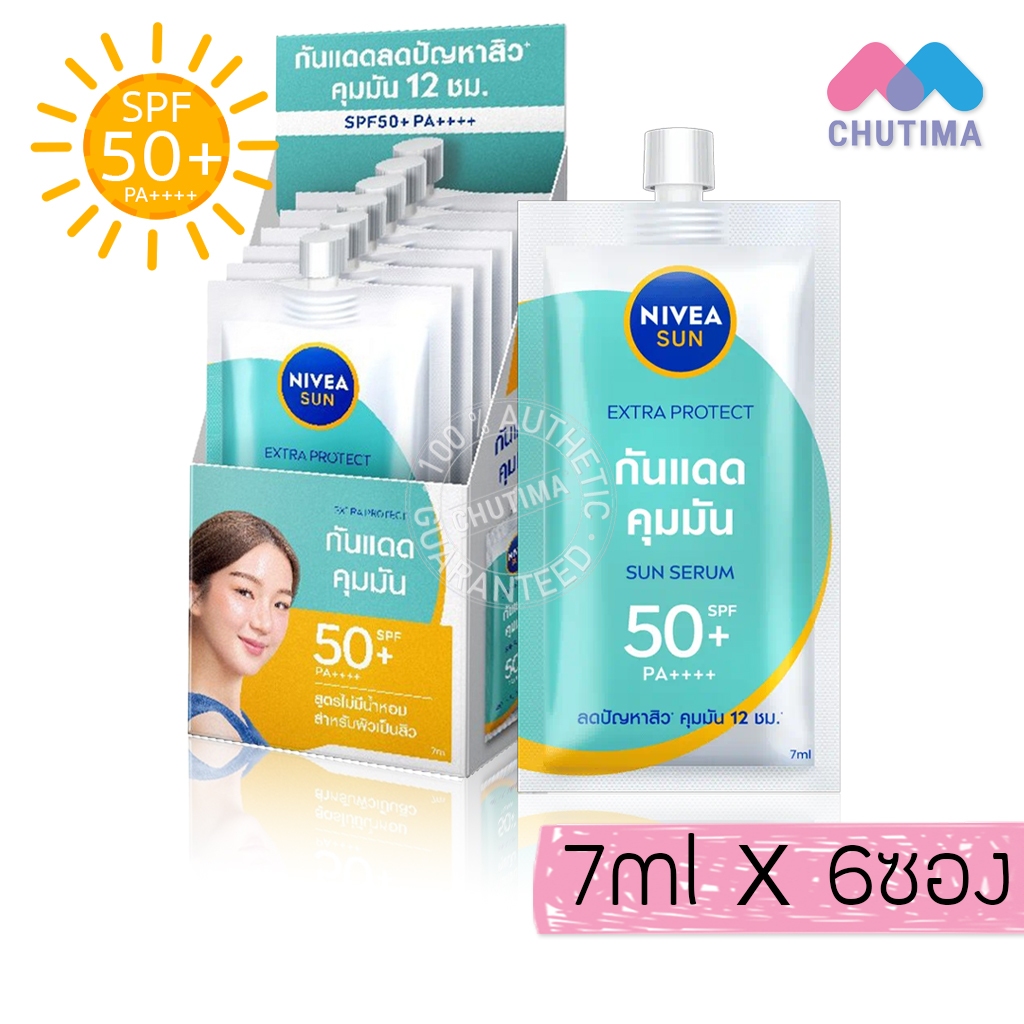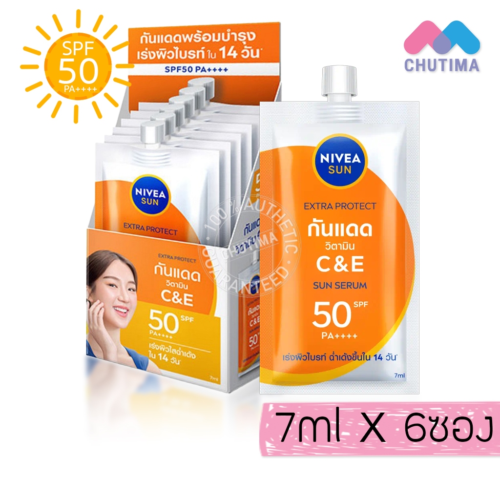 (ยกกล่อง) กันแดด นีเวีย ซัน / ลูมินัส เซรั่ม ครีมกันแดด เซรั่มบำรุงผิวหน้า Nivea SPF50 PA++++ 7 ml. x6