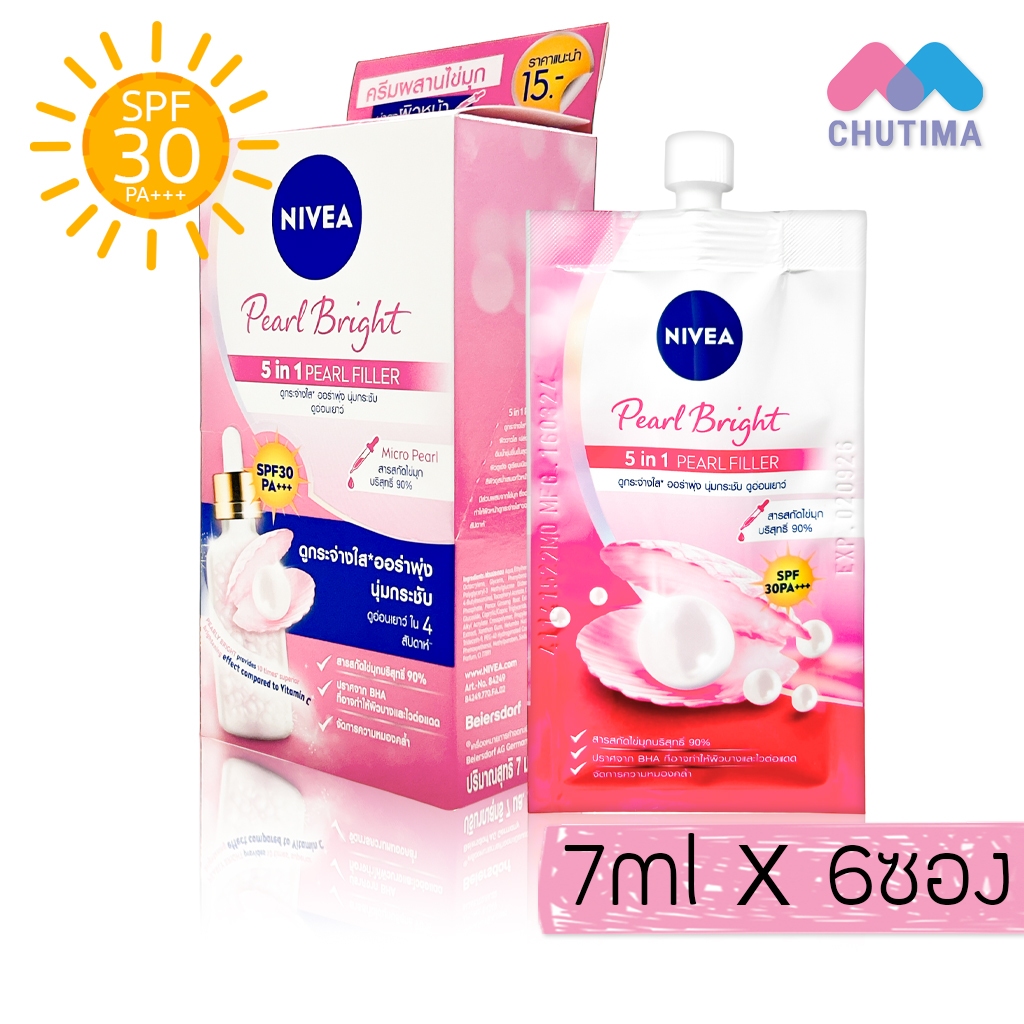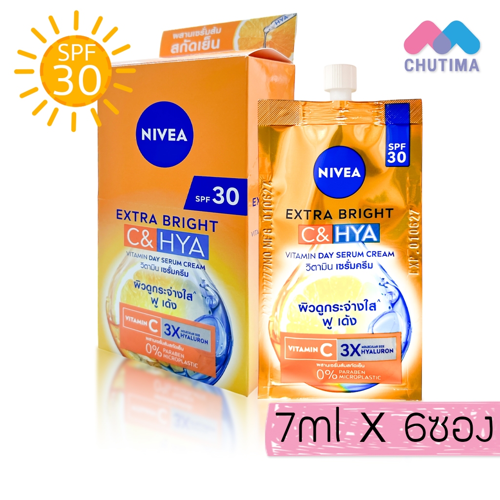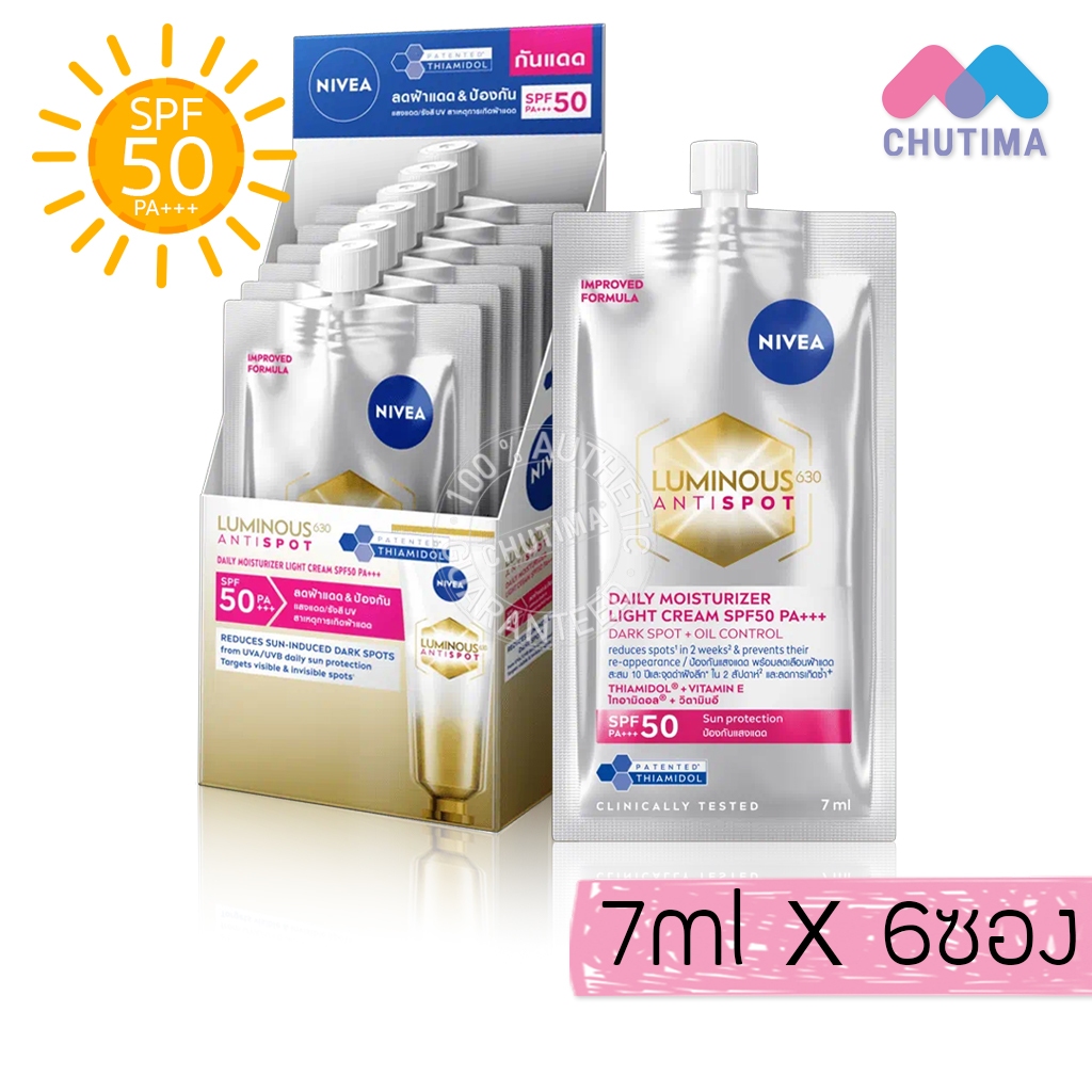 (ยกกล่อง) กันแดด นีเวีย ซัน / ลูมินัส เซรั่ม ครีมกันแดด เซรั่มบำรุงผิวหน้า Nivea SPF50 PA++++ 7 ml. x6