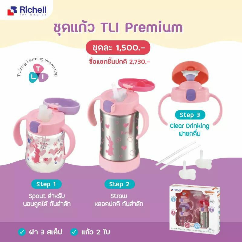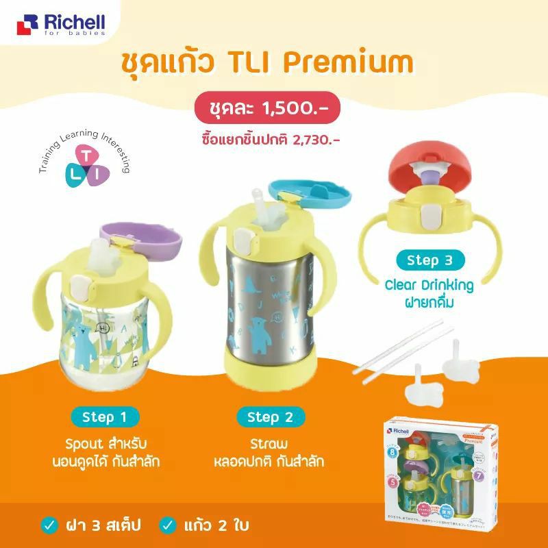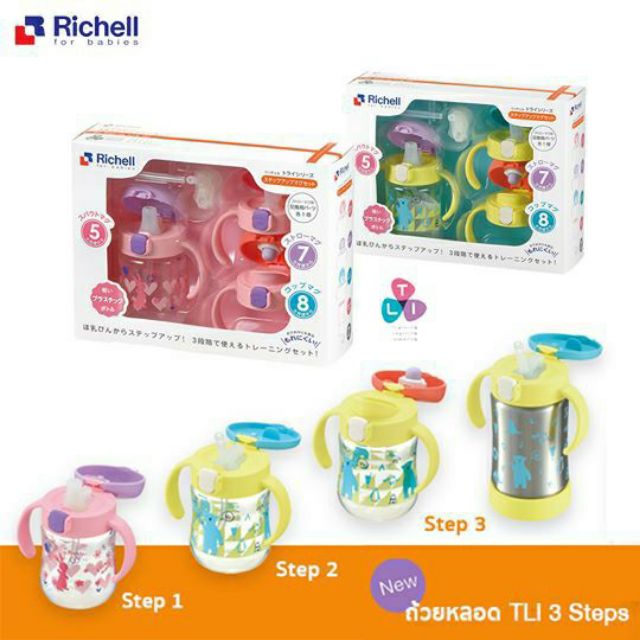 Richell Spout Mug set แก้ว3สเตป ของแท้จากศูนย์ไทย 3 Step แก้วหัดดื่ม