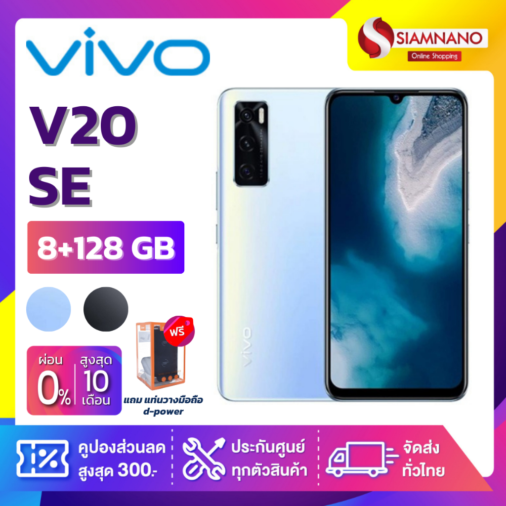 Vivo V20SE (8+128GB) + กล้องหลัง 3 ตัว + จอกว้าง 6.44" ( รับประกัน 1 ปี)