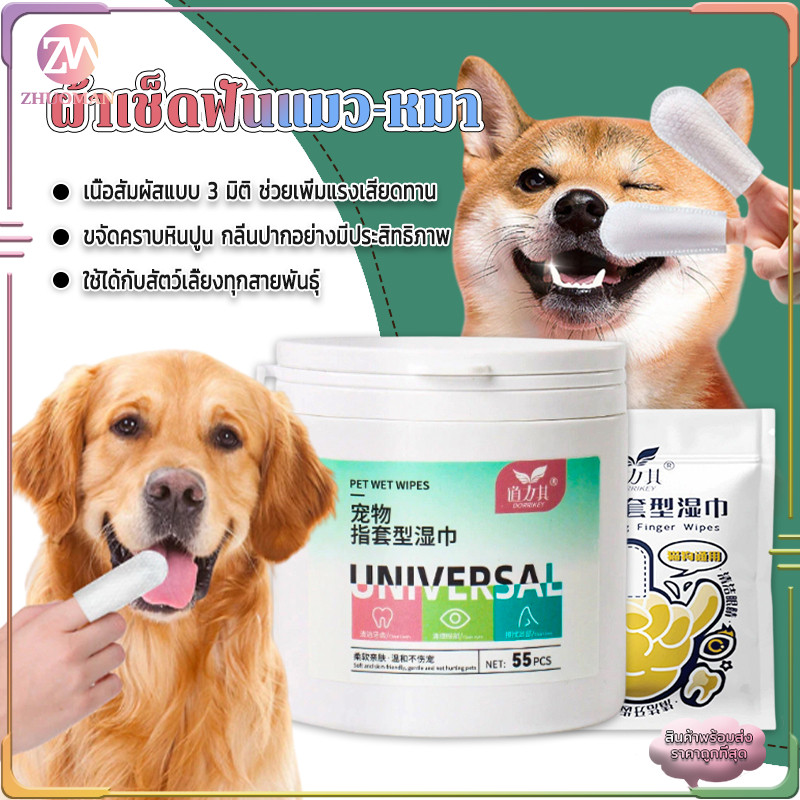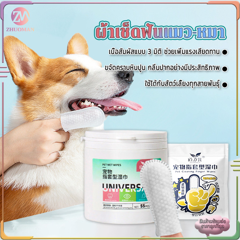 ผ้าเช็ดฟันแมว-หมา ผ้าเช็ดฟันสัตว์เลี้ยง 55 ชิ้น แผ่นเช็ดตาแมว แผ่นเช็ดตาสุนัข ลดคราบหินปูน ขจัดกลิ่นปาก เช็ดหู เช็ดฟัน