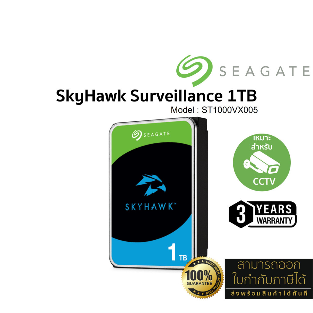 SEAGATE 1TB SkyHawk Surveillance HDD 3.5" For CCTV (5900RPM, 64MB, sATA 6GB/s_ST1000VX005) ประกันศูนย์ 3 ปี